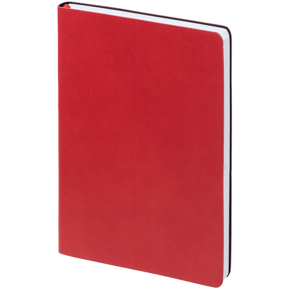 Ежедневник с гибкой обложкой, выполнен из материала Latte, красный, дополнен ляссе в цвет обложки.