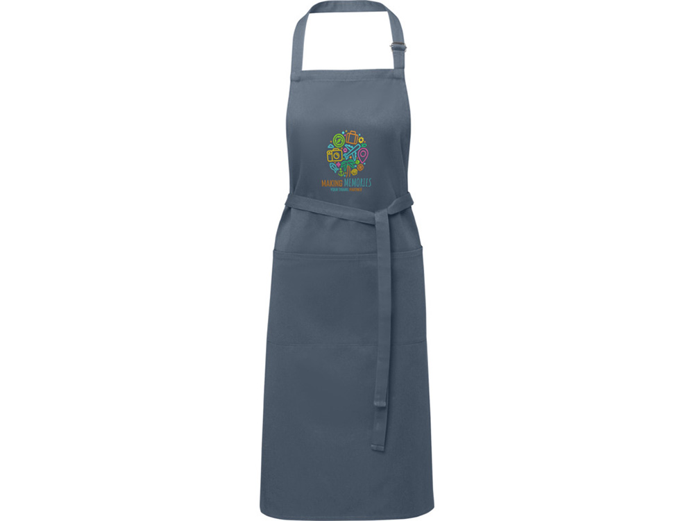 Защитить красивую одежду во время приготовления пищи легко благодаря фартуку Andrea. Фартук изготовлен из саржи плотностью 240 г/м² (65 % полиэстер и 35 % хлопок), что делает его плотным и прочным, но при этом мягким и удобным при ношении. Два передних кармана предлагают быстрый и простой способ хранения кухонных принадлежностей. Фартук регулируется с помощью пряжки на шее и завязок на спине, что делает его универсальным для всех размеров.