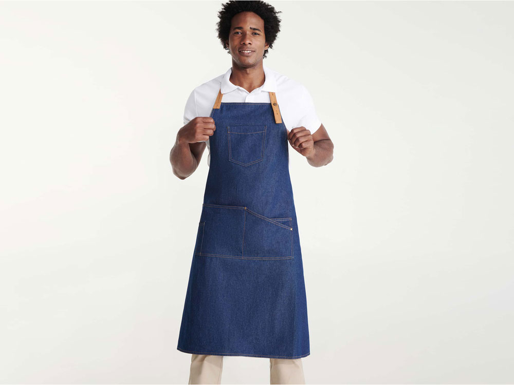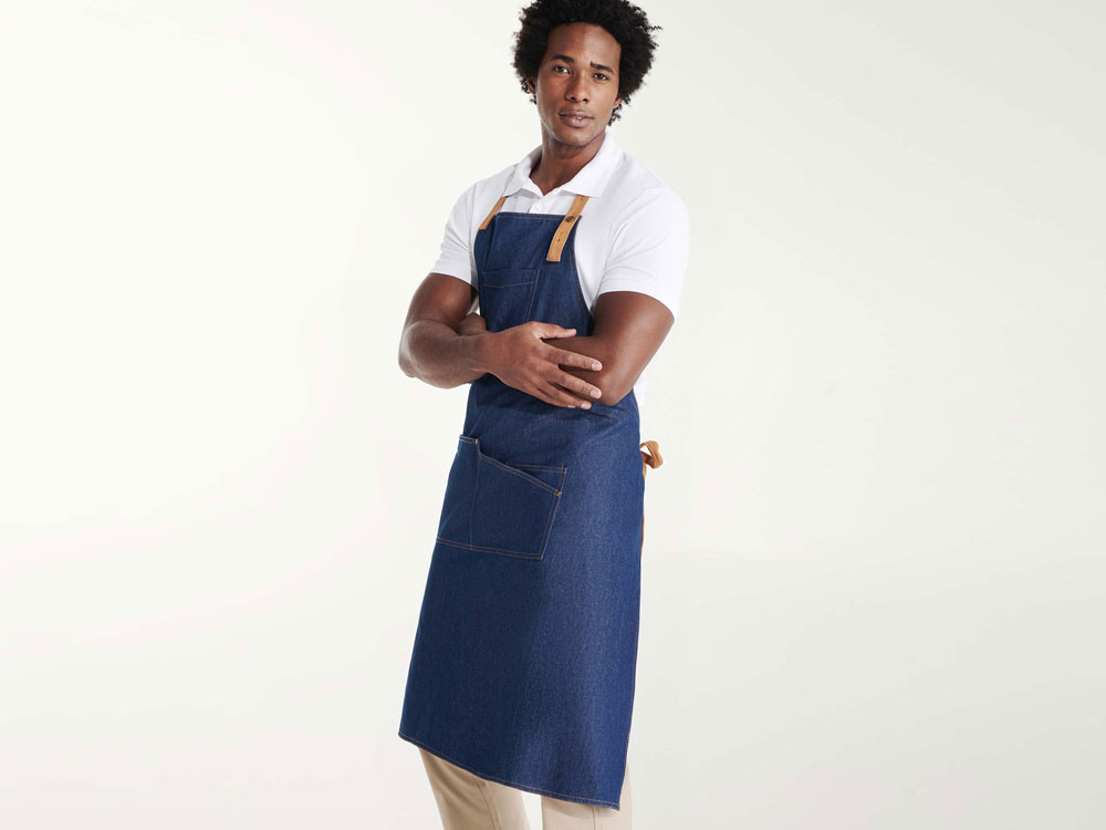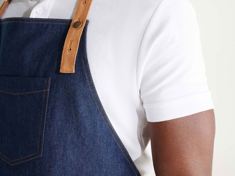 Фартук Batali - стильное решение в удобном формате! - оптимальная длина - контрастная лямка на шее, регулируемая с помощью металлической пуговицы в трех положениях - нагрудный карман - четыре передних кармана с заклепками, один из которых предназначен для шариковой ручки - контрастные боковые завязки - контрастная строчка