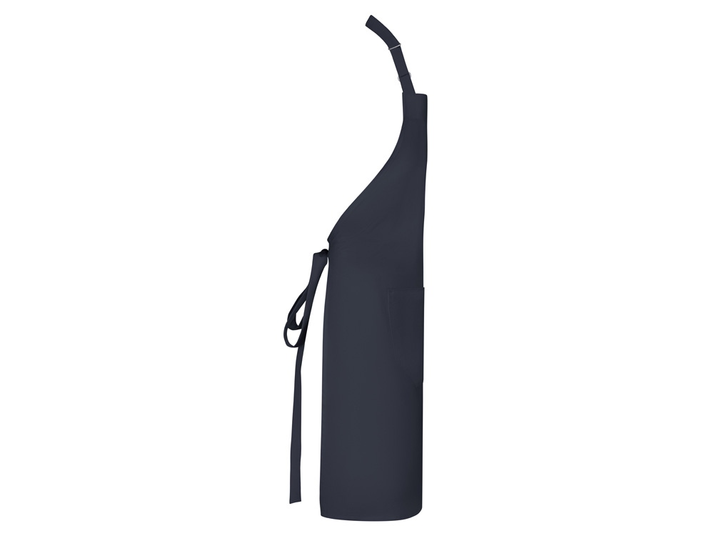 Длинный твиловый фартук из переработанного полиэстера и хлопка. Шейный ремешок с регулируемой застежкой. Завязки по бокам. Два передних кармана.