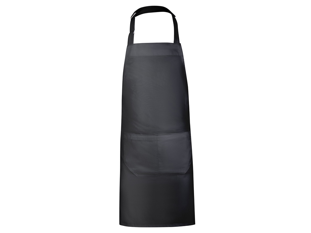 Длинный твиловый фартук из переработанного полиэстера и хлопка. Шейный ремешок с регулируемой застежкой. Завязки по бокам. Два передних кармана.