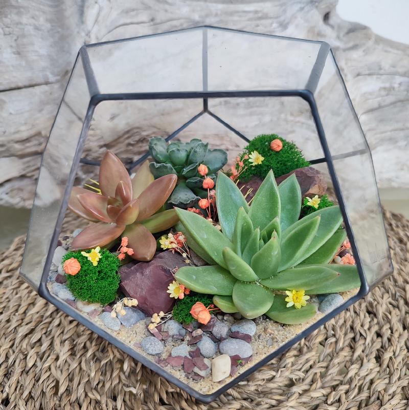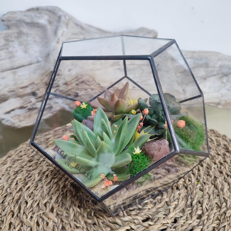 | Декоративные элементы | стабилизированный мох, сухоцветы, декоративные камни (некоторые декоративные элементы и растения могут быть изменены) |