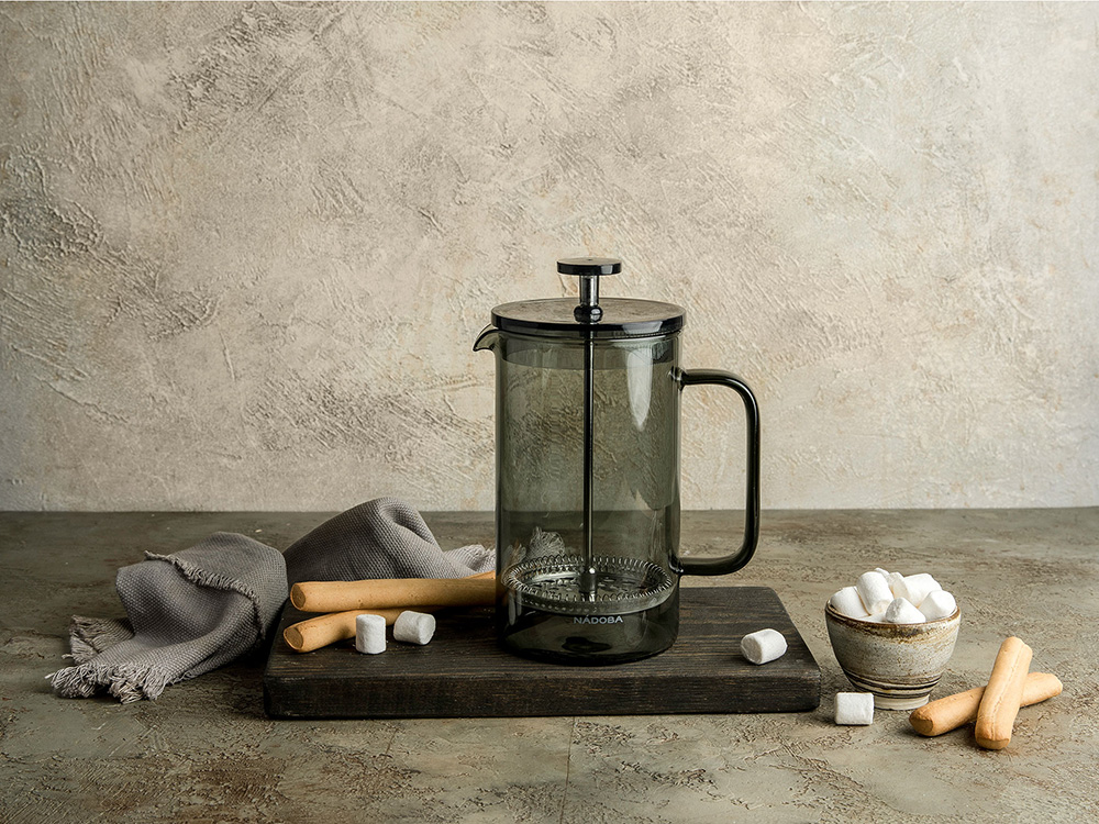 Френч-пресс NADOBA 1 л серии Tomas выполнен из жаропрочного боросиликатного стекла, обладающего повышенной стойкостью к любым внешним воздействиям. Преимуществом данном материала является способность выдерживает как высокие, так и низкие температуры. Поэтому во френч-прессе возможно заваривать не только горячие напитки, но и делать прохладительные лимонады. Многослойная система фильтрации выполнена из высококачественная нержавеющая сталь 18/10 и отлично справляется даже с самыми мелкими частицами чая. Уникальные свойства данной стали обусловлены включением в её состав 18% хрома и 10% никеля, что придаёт изделию особую прочность, устойчивость к воздействию кислот и щелочей. А специальное PVC покрытие делает колбу прочной и защищает от мелких повреждений. Френч-пресс легко моется. В комплекте предусмотрена мерная ложка 7 г для более точной дозировки. Крышечка заварочного чайника выполнена из пищевого термопластика. Эргономичная ручка не нагревается и крепко держится в руке. Френч-пресс NADOBA серии Tomas допускается мыть в посудомоечной машинке. Гарантия на изделие 3 года.