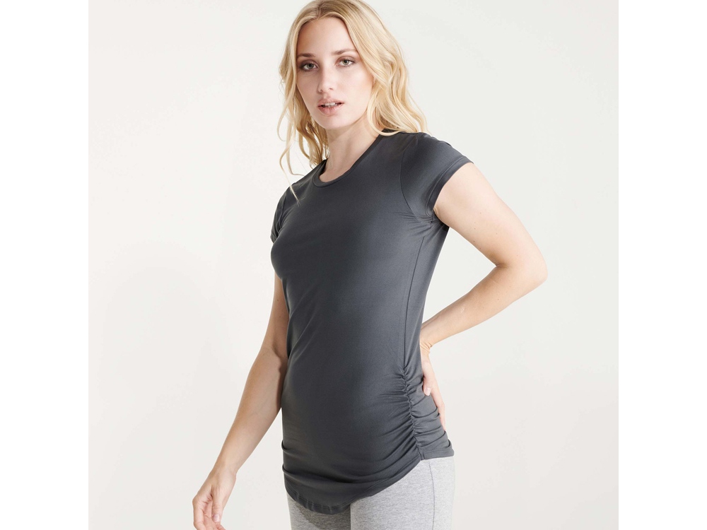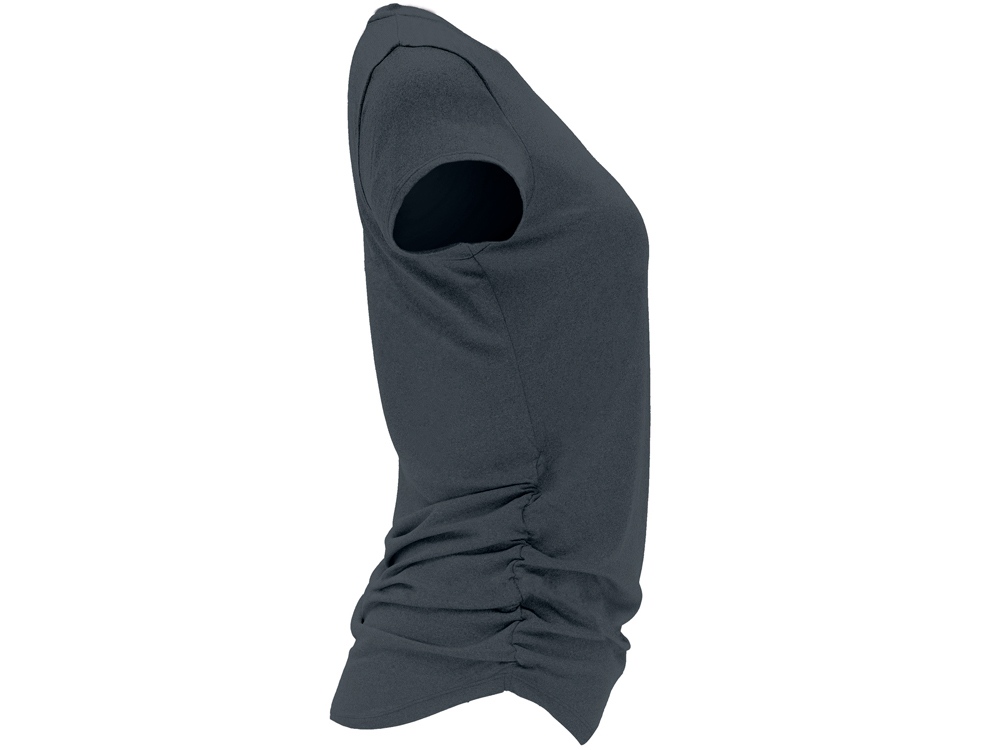 Спортивная футболка с коротким рукавом для женщин. Полотно из полиэстера на ощупь напоминающее хлопок. Круглый вырез горловины обработан бейкой из того же полотна. Эластичная драпировка по боковым швам для лучшей посадки по фигуре. Узкий силуэт.