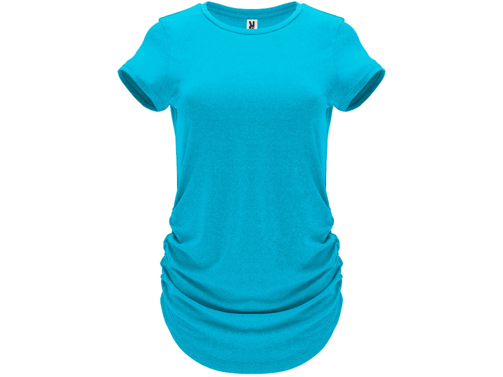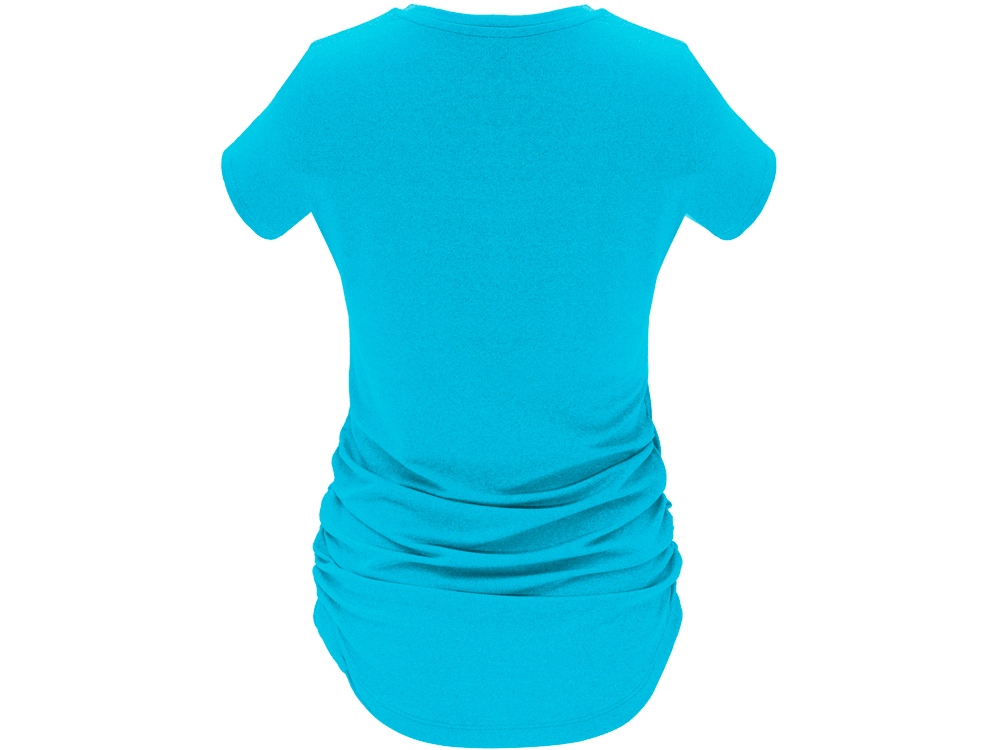 Спортивная футболка с коротким рукавом для женщин. Полотно из полиэстера на ощупь напоминающее хлопок. Круглый вырез горловины обработан бейкой из того же полотна. Эластичная драпировка по боковым швам для лучшей посадки по фигуре. Узкий силуэт.