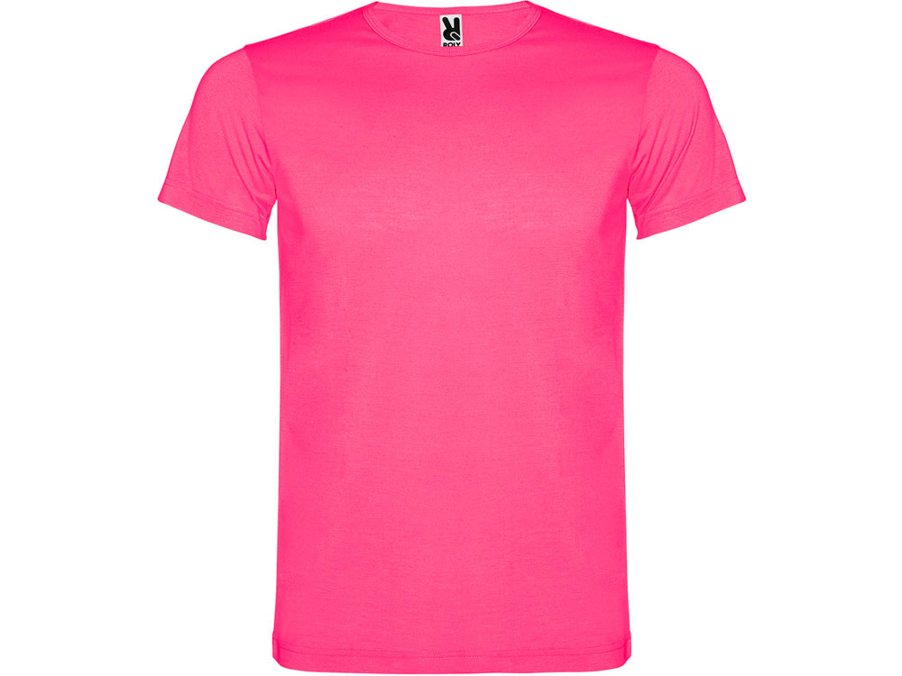 Футболка с коротким рукавом и круглым вырезом горловины. Модель в неоновых цветах выполнена из полиэстера, на ощупь напоминающего хлопок.