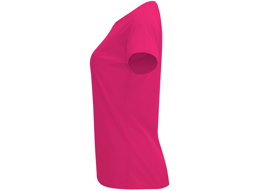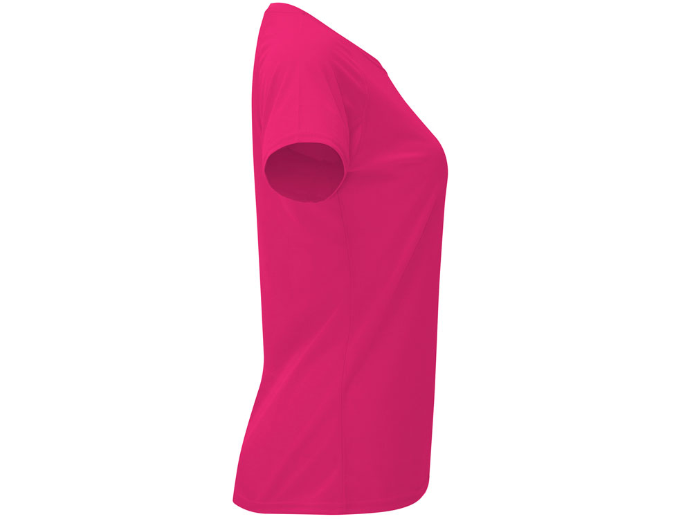 Спортивная футболка с коротким рукавом реглан для женщин. Круглый вырез горловины с отделкой плоским швом. Рукав сложного кроя для обеспечения дополнительного удобства при занятиях спортом. Отделка плоским швом с застилом по пройме и рукавам. Технологичное полотно с функцией DRY CONTROL и защитой от UV излучения