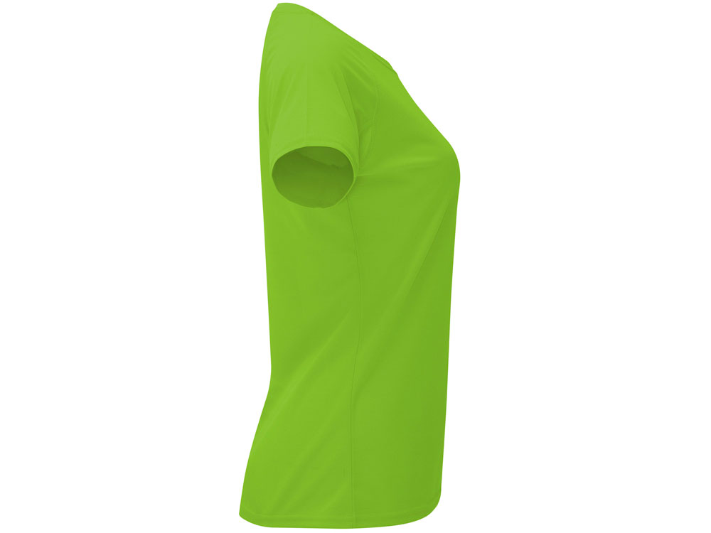Спортивная футболка с коротким рукавом реглан для женщин. Круглый вырез горловины с отделкой плоским швом. Рукав сложного кроя для обеспечения дополнительного удобства при занятиях спортом. Отделка плоским швом с застилом по пройме и рукавам. Технологичное полотно с функцией DRY CONTROL и защитой от UV излучения