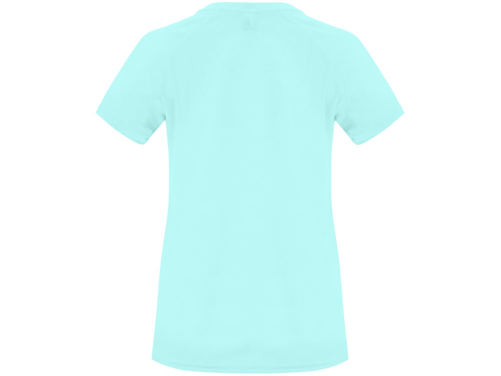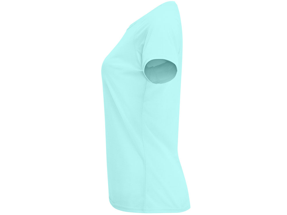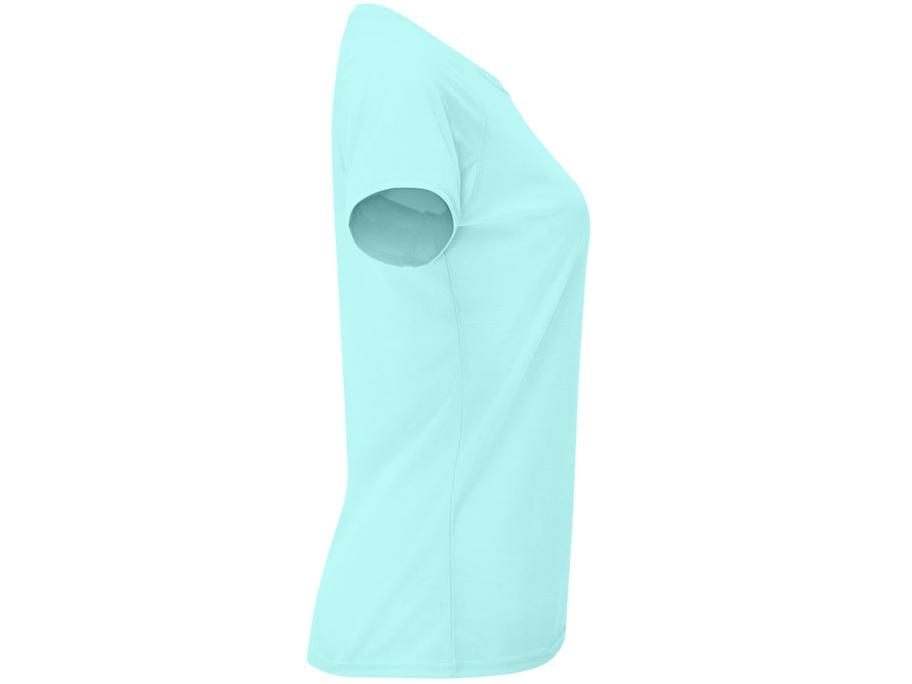 Спортивная футболка с коротким рукавом реглан для женщин. Круглый вырез горловины с отделкой плоским швом. Рукав сложного кроя для обеспечения дополнительного удобства при занятиях спортом. Отделка плоским швом с застилом по пройме и рукавам. Технологичное полотно с функцией DRY CONTROL и защитой от UV излучения