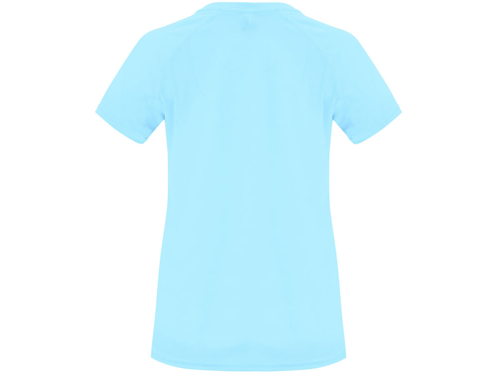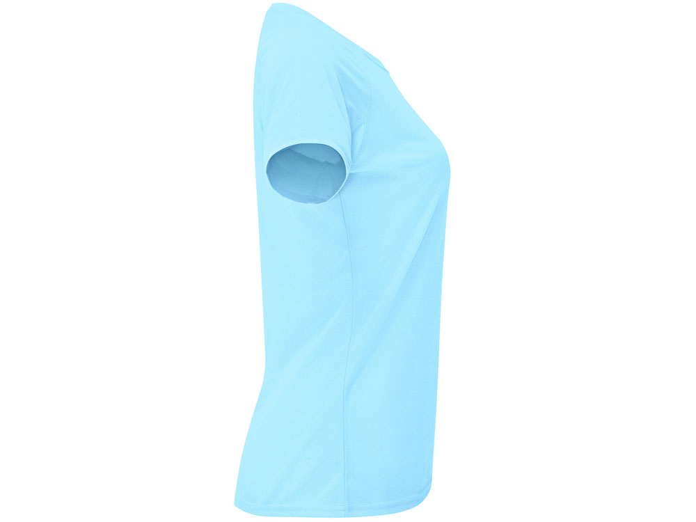 Спортивная футболка с коротким рукавом реглан для женщин. Круглый вырез горловины с отделкой плоским швом. Рукав сложного кроя для обеспечения дополнительного удобства при занятиях спортом. Отделка плоским швом с застилом по пройме и рукавам. Технологичное полотно с функцией DRY CONTROL и защитой от UV излучения