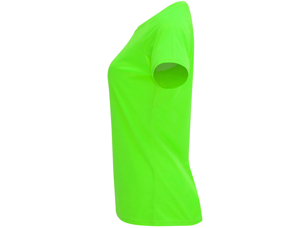 Спортивная футболка с коротким рукавом реглан для женщин. Круглый вырез горловины с отделкой плоским швом. Рукав сложного кроя для обеспечения дополнительного удобства при занятиях спортом. Отделка плоским швом с застилом по пройме и рукавам. Технологичное полотно с функцией DRY CONTROL и защитой от UV излучения