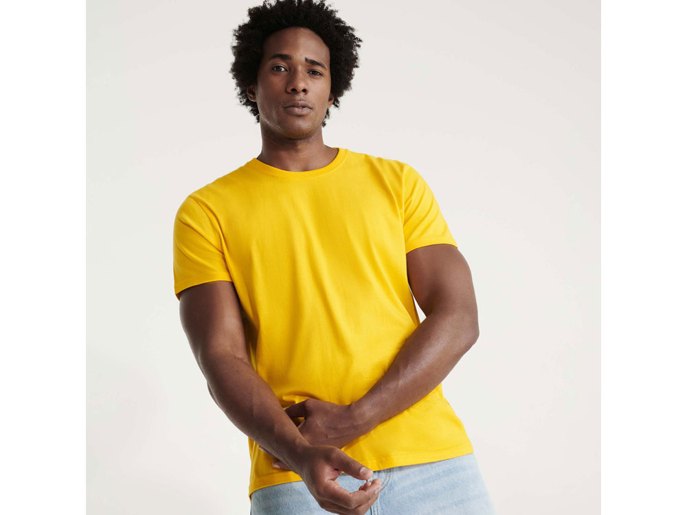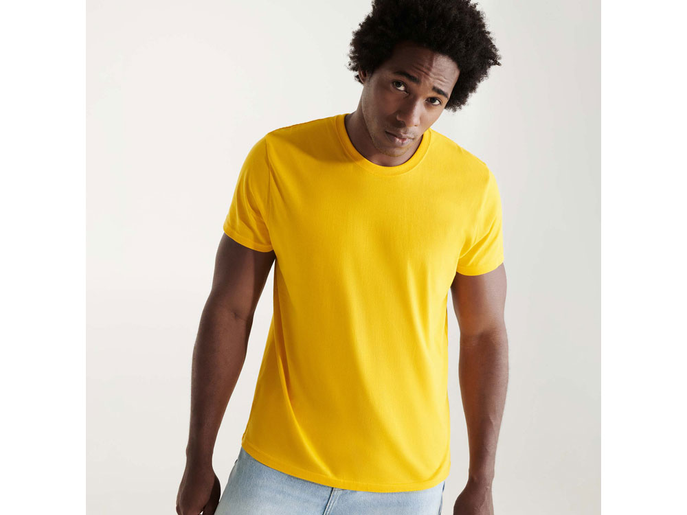 Футболка с короткими рукавами из высококачественного компактного полотна. Круглый вырез горловины обработан рибом, горловина спинки и плечевые швы отделаны тесьмой. Модель с боковыми швами. Широкая палитра цветов. В ассортименте присутствует аналогичная детская модель Braco
