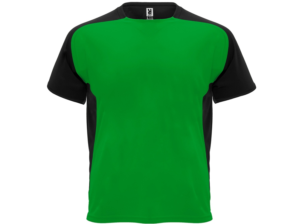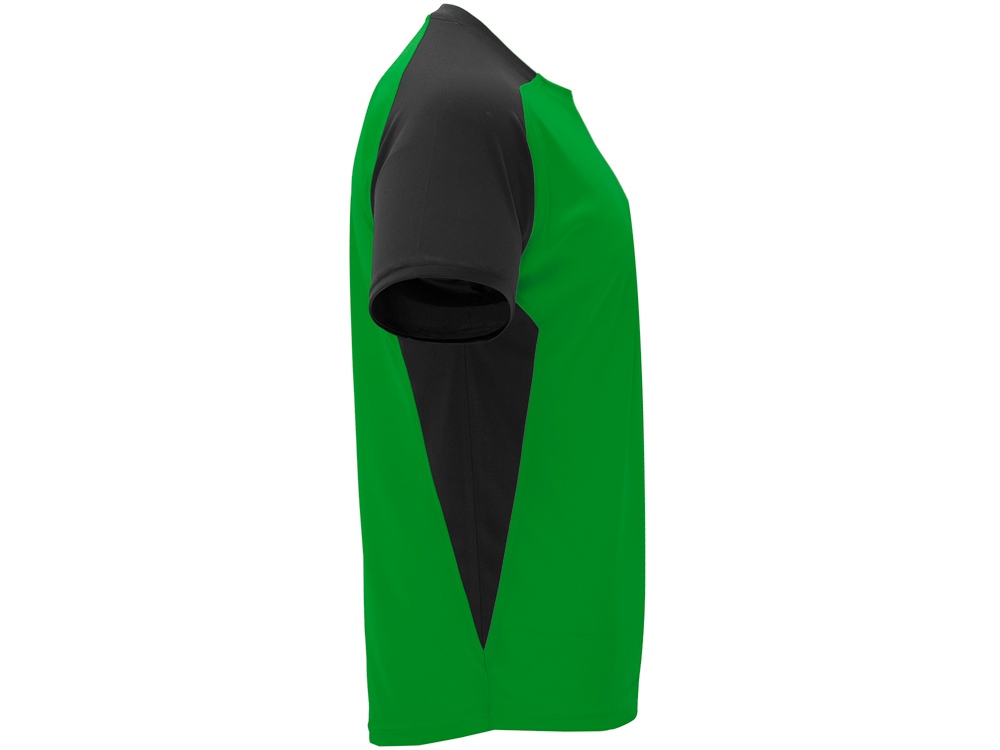 Спортивная футболка с коротким рукавом реглан. Круглый вырез горловины. Контрастные рукава и боковые вставки.