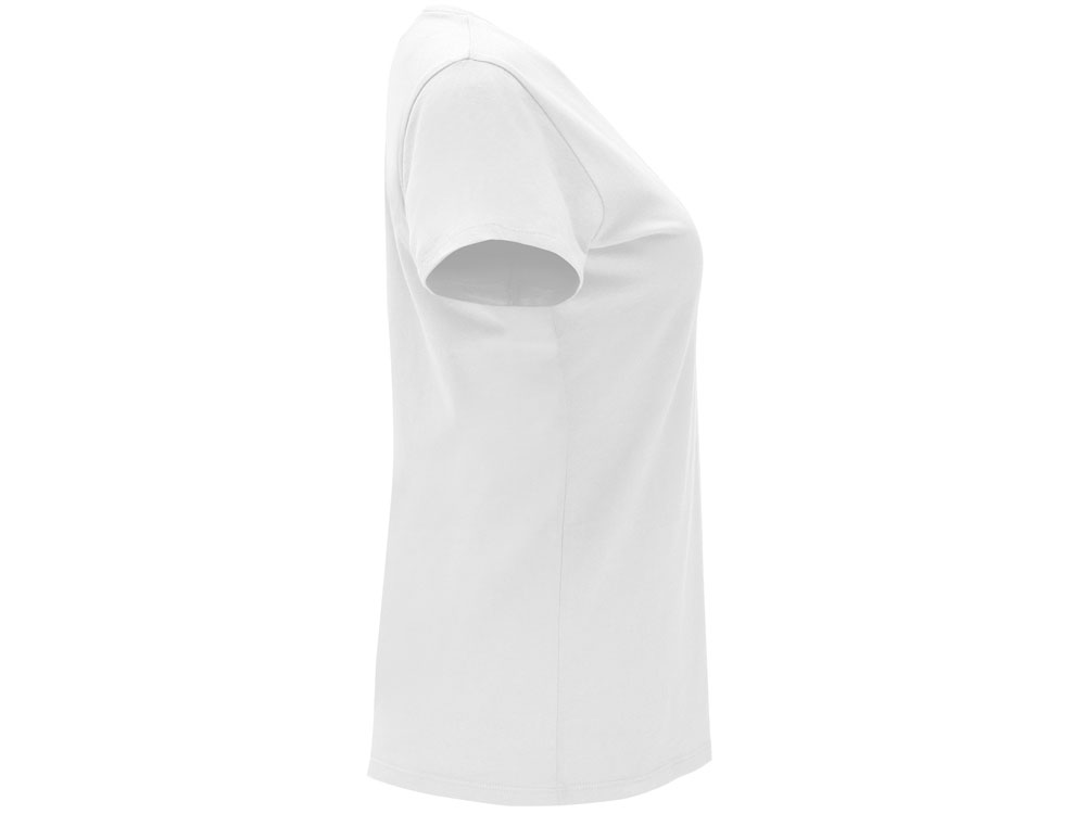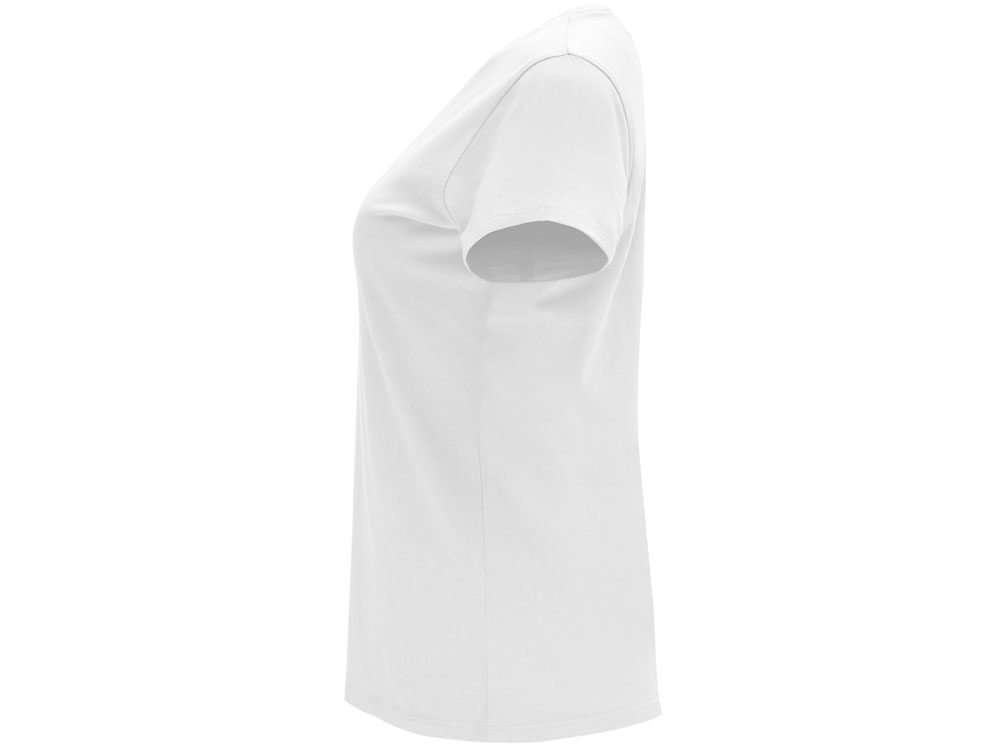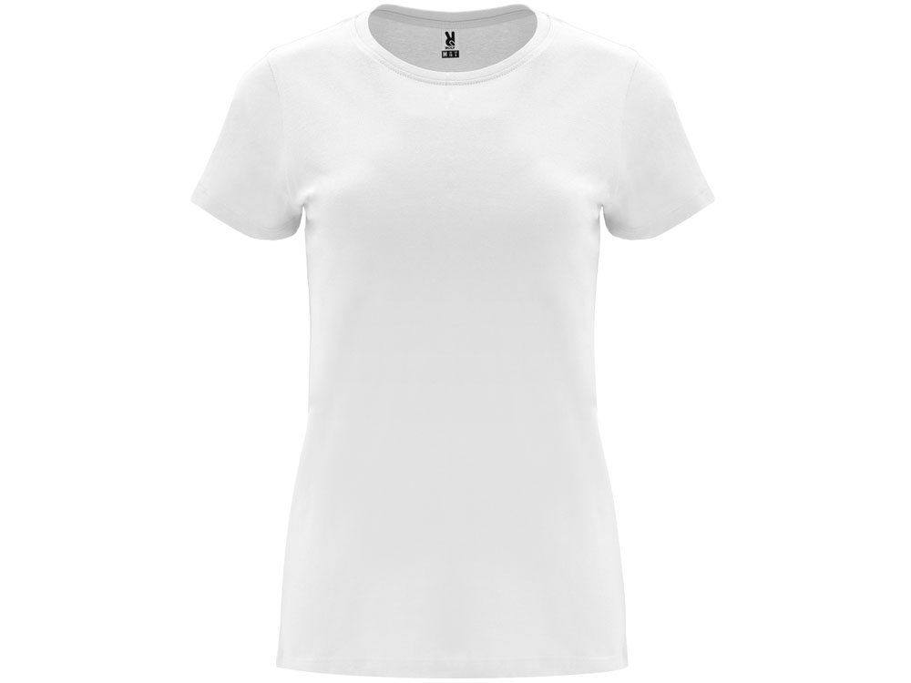 Женская приталенная футболка. Круглый вырез горловины обработан рибом 1х1. Шов горловины укреплен тесьмой.