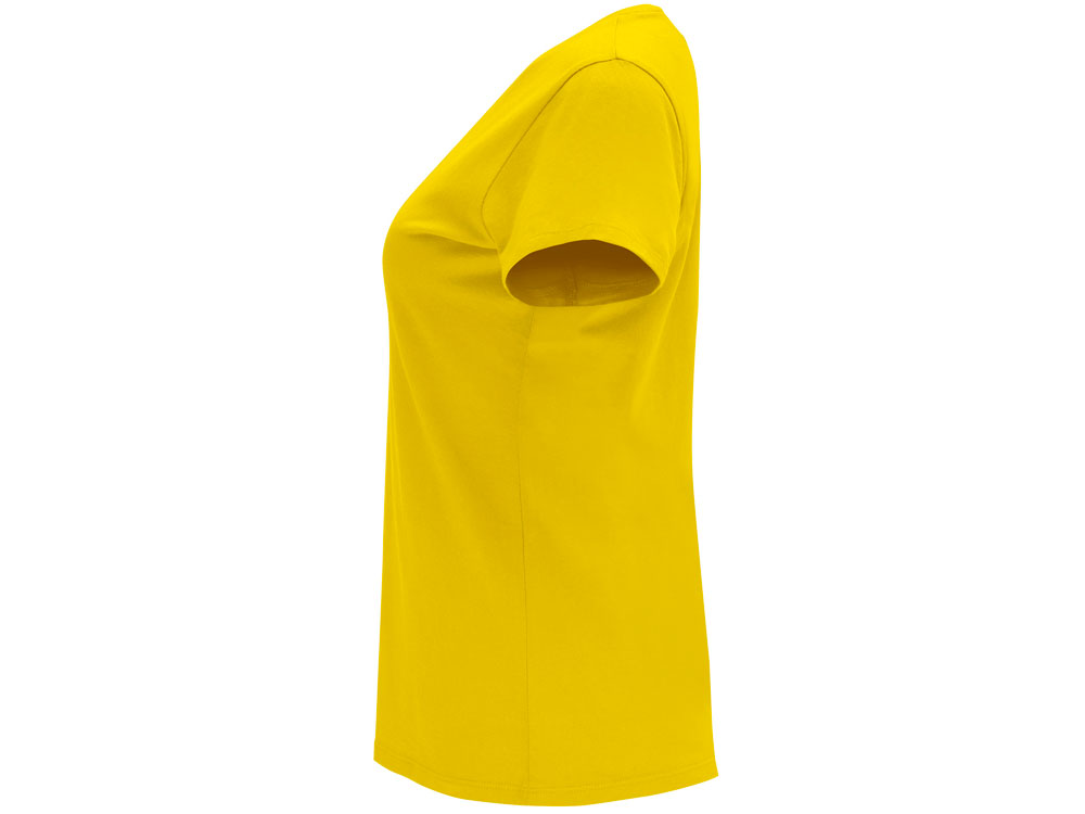 Женская приталенная футболка. Круглый вырез горловины обработан рибом 1х1. Шов горловины укреплен тесьмой.