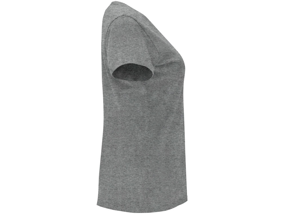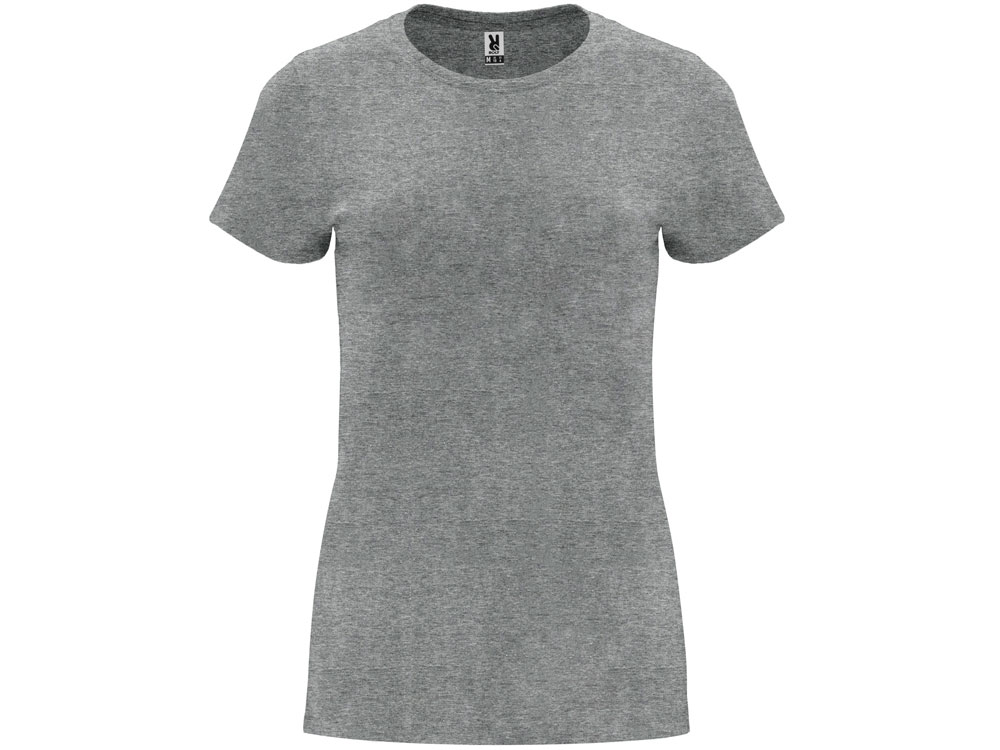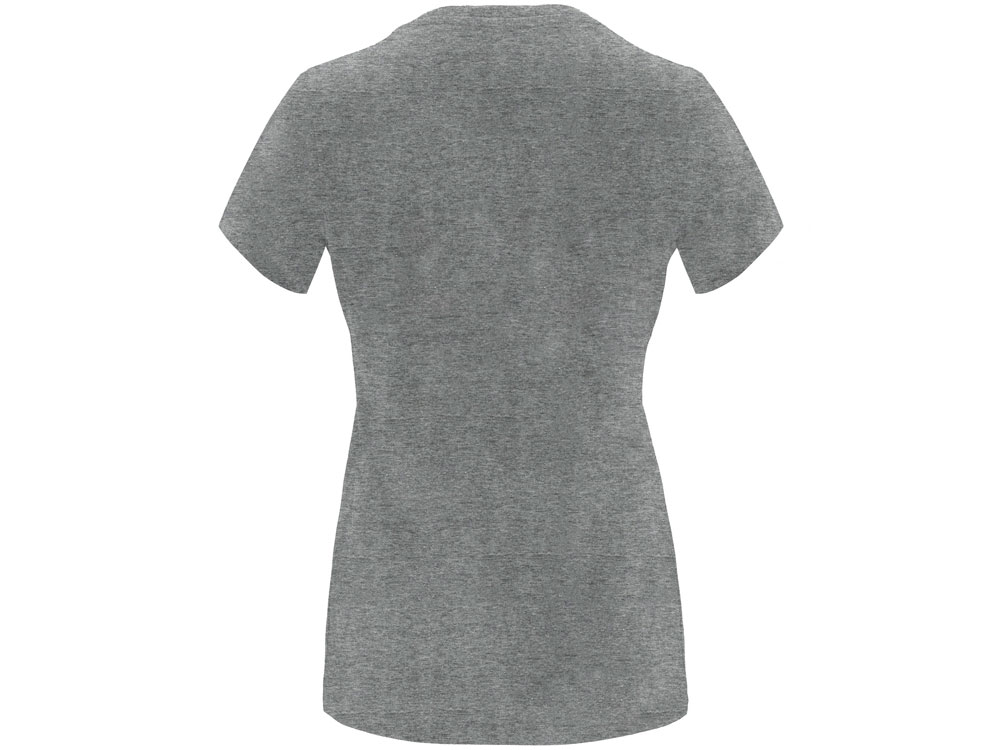 Женская приталенная футболка. Круглый вырез горловины обработан рибом 1х1. Шов горловины укреплен тесьмой.