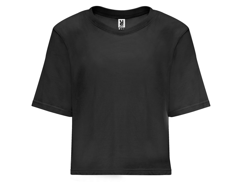Укороченная женская футболка расслабленного силуэта. Риб 1х1 по горловине