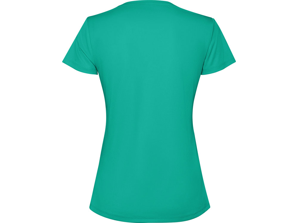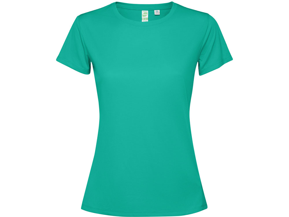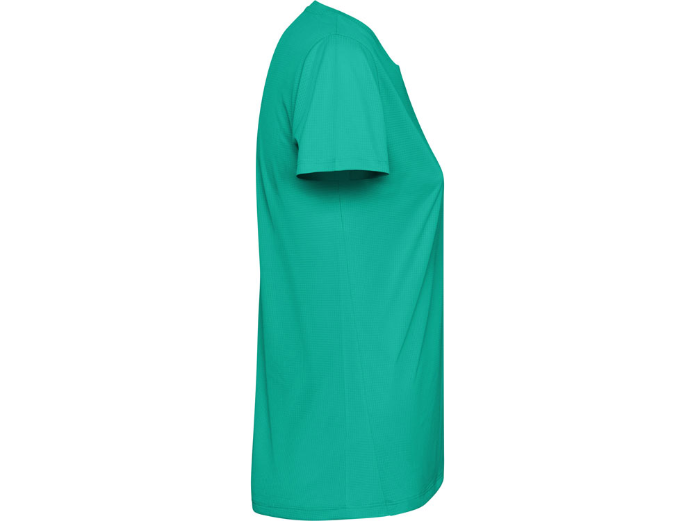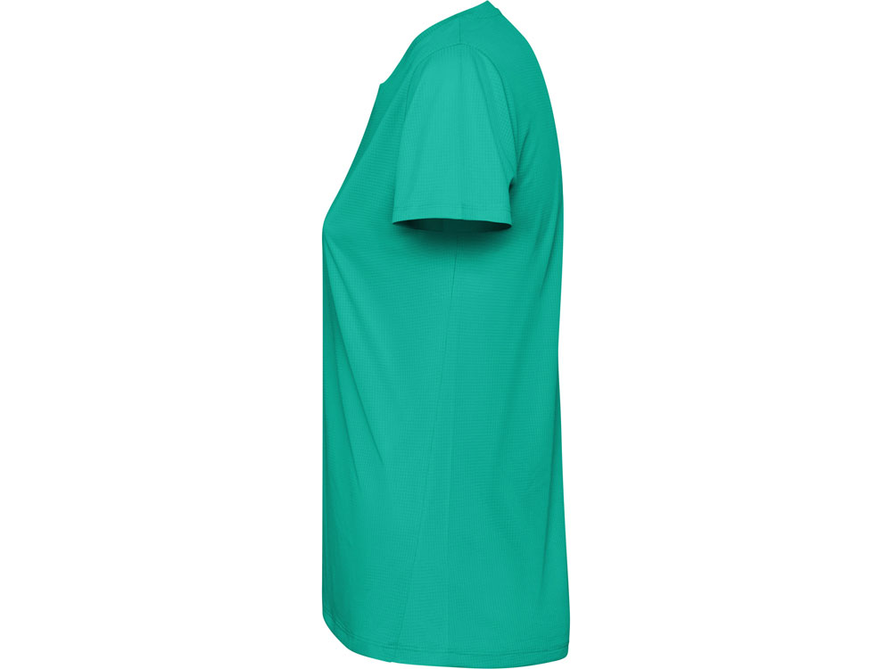 Женская футболка с коротким рукавом из технологичного полотна. Отстрочки в тон. Спинка с удлинением. Боковые швы со смещением вперед.