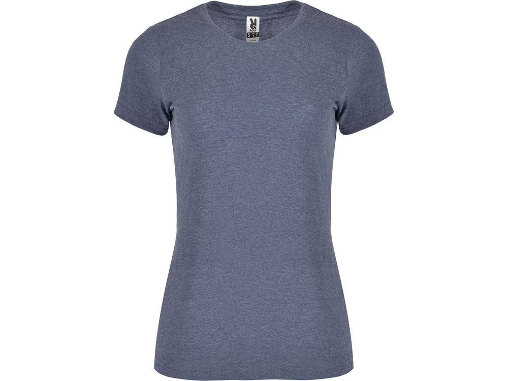 Футболка с коротким рукавом в меланжевом эффекте. Риб горловины 1х1 дополнительно укреплен двойной строчкой.