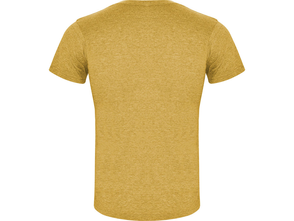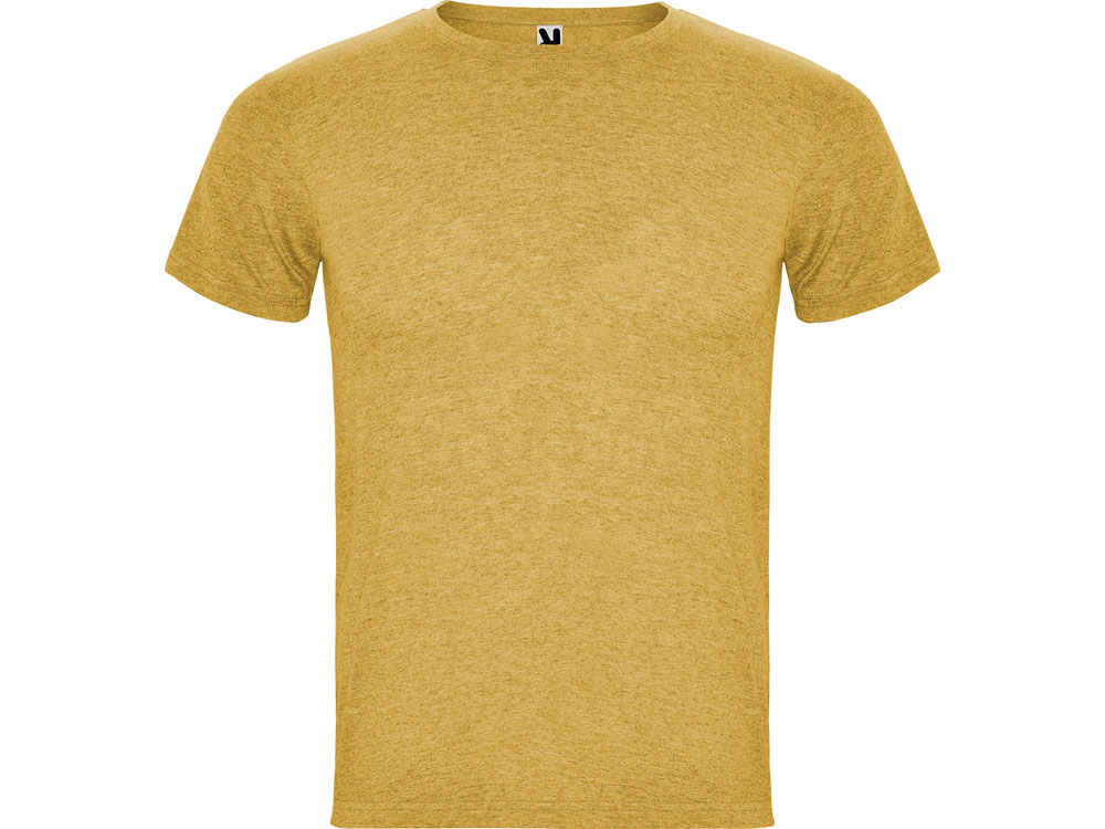 Футболка без боковых швов с коротким рукавом в меланжевом эффекте. Риб горловины 1х1 дополнительно укреплен двойной строчкой.