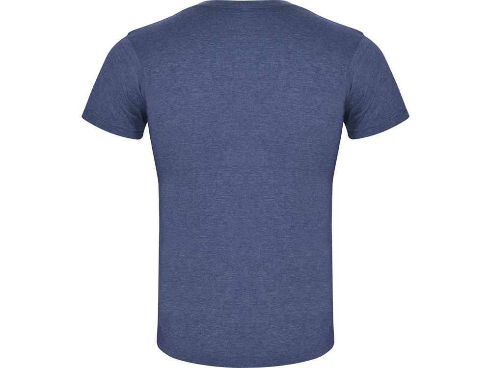 Футболка без боковых швов с коротким рукавом в меланжевом эффекте. Риб горловины 1х1 дополнительно укреплен двойной строчкой.