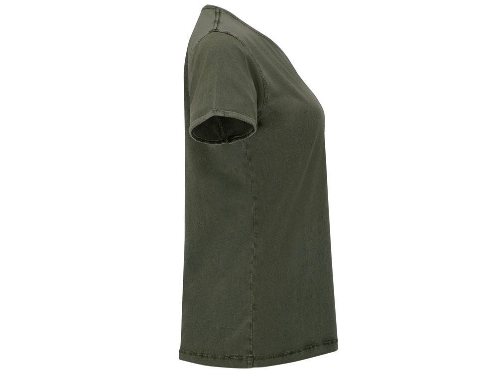 Женская футболка с джинсовым эффектом. Короткий рукав, горловина обработана рибом 1х1 и дополнительно укреплена тесьмой. Двойная отстрочка по пройме. Рукав с закручивающимся краем. В ассортименте также представлена аналогичная мужская модель Husky