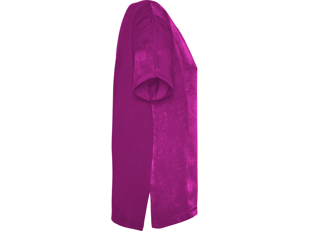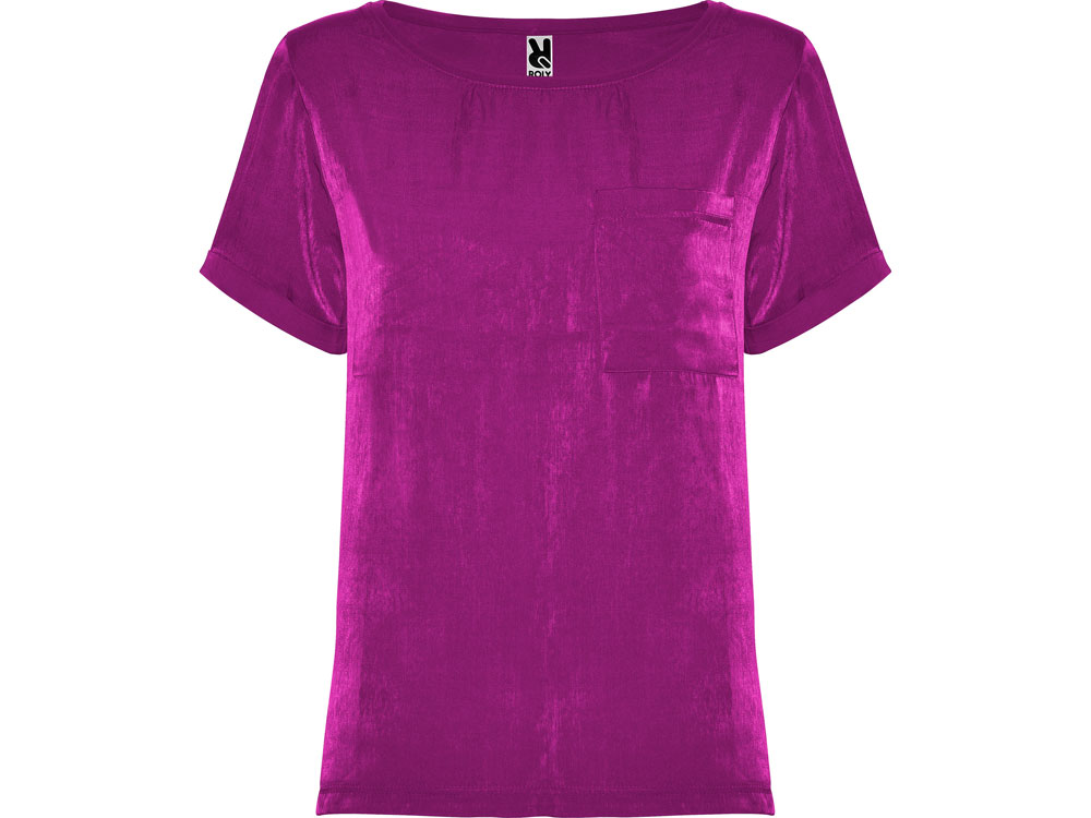 Женская футболка с коротким рукавом с расширенной горловиной. Накладной карман на груди слева. Спинка длиннее полочки. Разрезы в боковых швах.