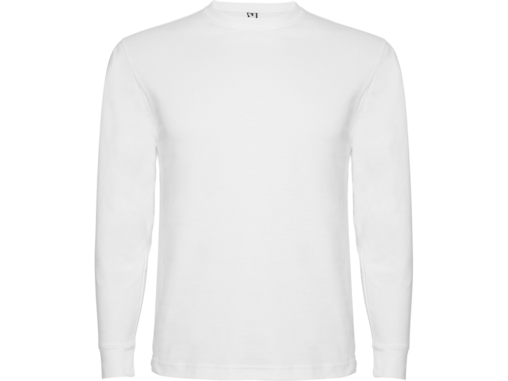 Футболка с длинным рукавом без боковых швов. Круглый вырез горловины и манжеты из риба 1х1. Укрепляющая отделочная строчка по горловине и плечам