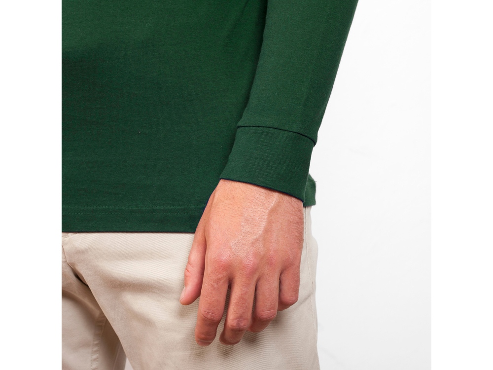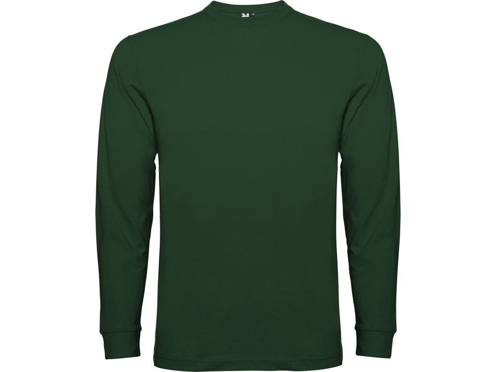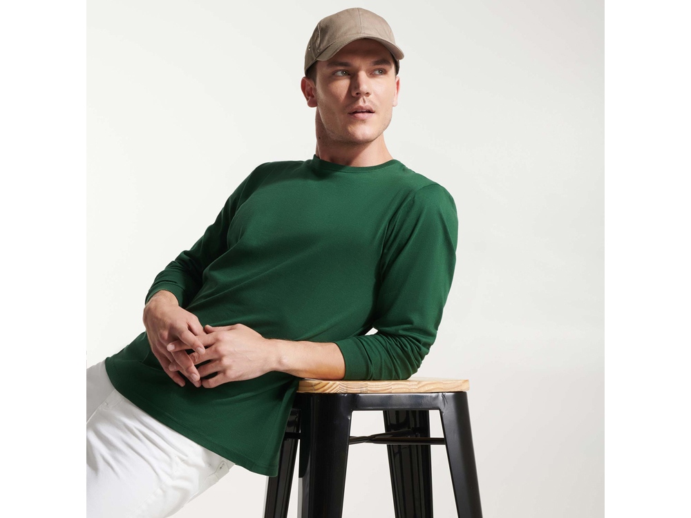 Футболка с длинным рукавом без боковых швов. Круглый вырез горловины и манжеты из риба 1х1. Укрепляющая отделочная строчка по горловине и плечам