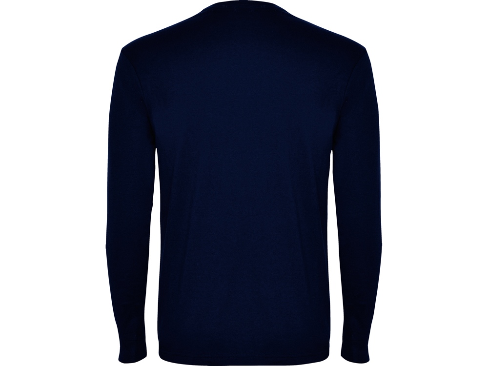 Футболка с длинным рукавом без боковых швов. Круглый вырез горловины и манжеты из риба 1х1. Укрепляющая отделочная строчка по горловине и плечам