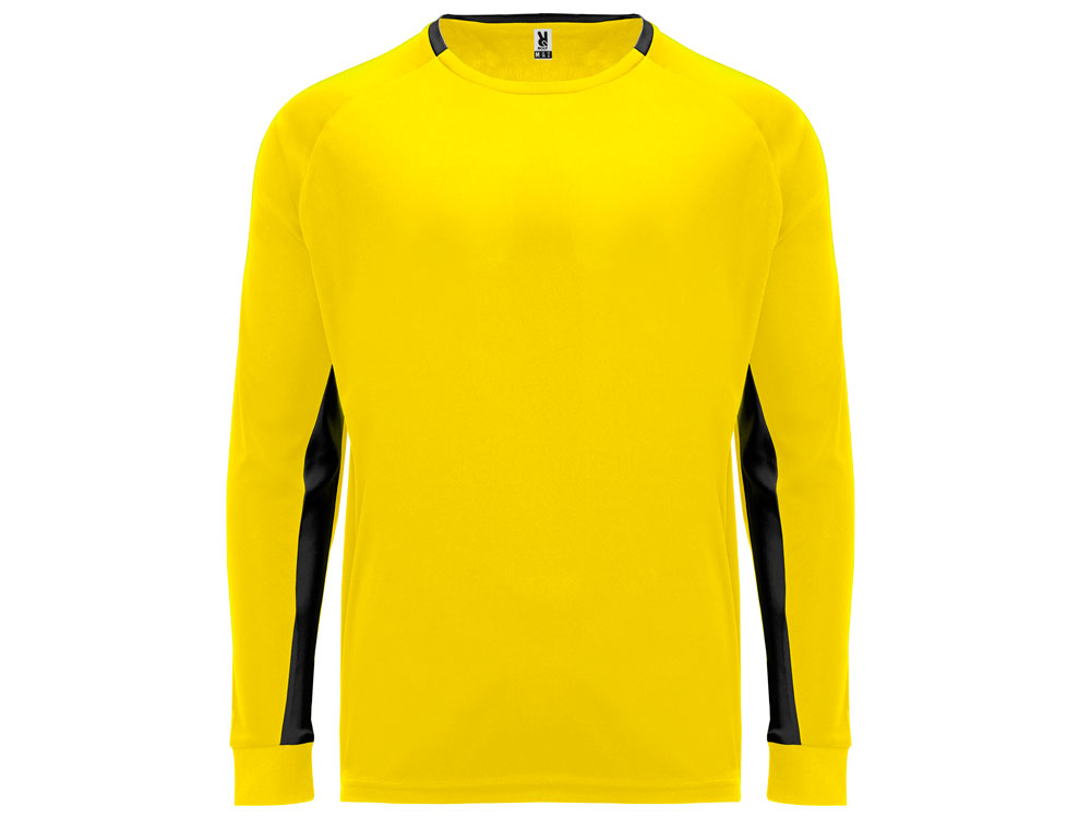 Мужская спортивная футболка. Длинный рукав со усиленным стеганым налокотником. Контрастная вставка на внутренней части рукава. Контрастная деталь на бейке горловины сзади и на манжетах