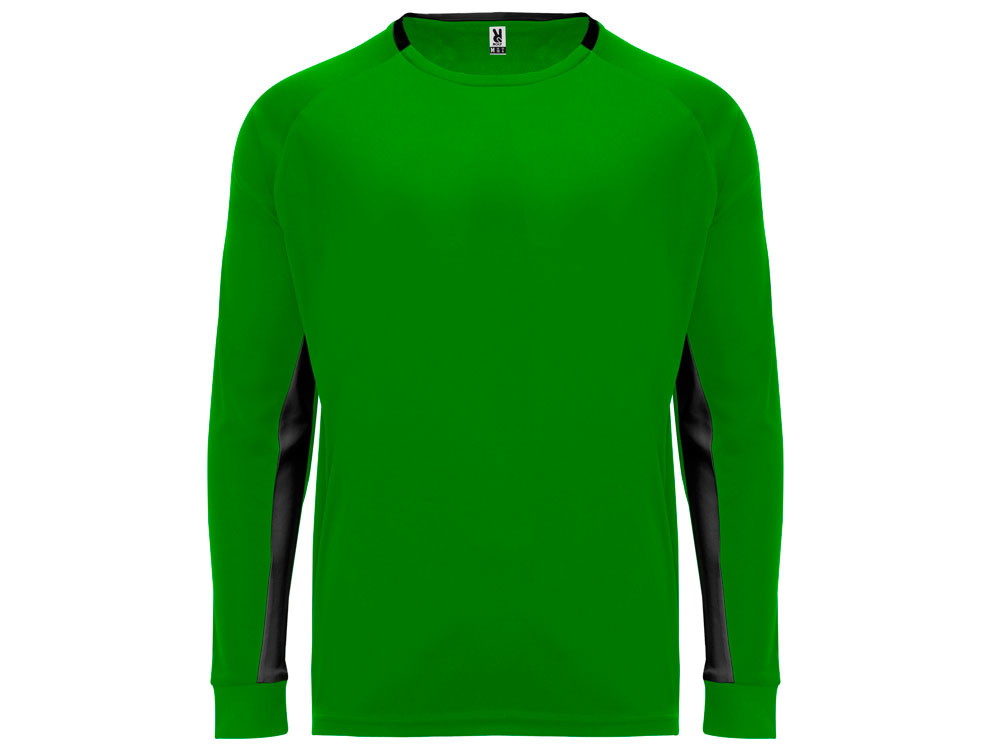 Мужская спортивная футболка. Длинный рукав со усиленным стеганым налокотником. Контрастная вставка на внутренней части рукава. Контрастная деталь на бейке горловины сзади и на манжетах