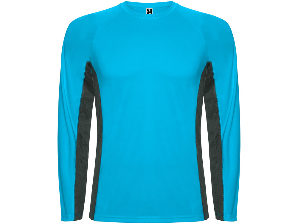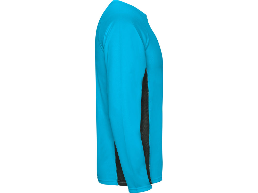 Футболка с длинным рукавом реглан из двух комбинируемых полотен. Основное полотно из структурного полотна, а боковые вставки и внутренняя сторона рукава из микроперфорированного полотна. Круглый вырез горловины дополнительно укреплен плоской строчкой. Комфортная и удобная модель
