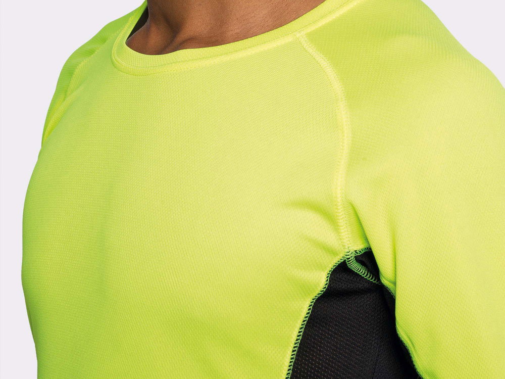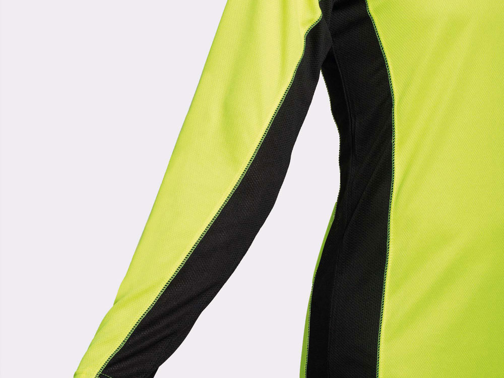Футболка с длинным рукавом реглан из двух комбинируемых полотен. Основное полотно из структурного полотна, а боковые вставки и внутренняя сторона рукава из микроперфорированного полотна. Круглый вырез горловины дополнительно укреплен плоской строчкой. Комфортная и удобная модель