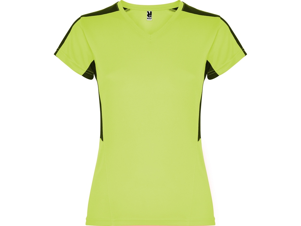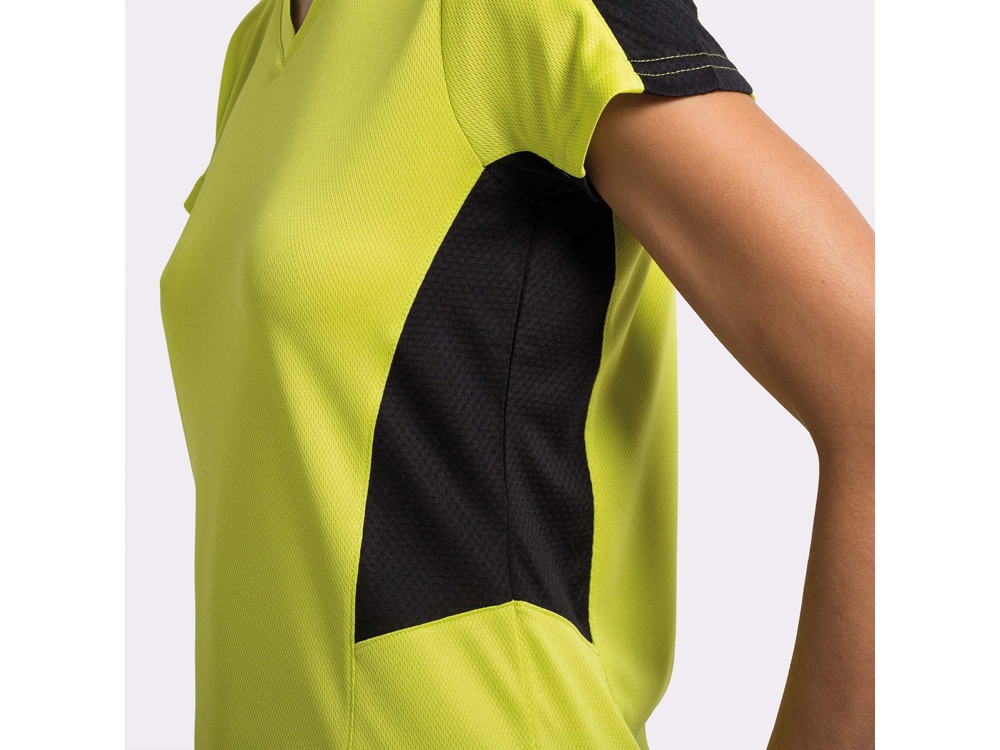 Женская футболка с коротким рукавом. V-образная горловина. Комбинация из 2 полотен контрастного цвета: структурное полотно на полочке и дышащая 3D сетка на плечах и боках.