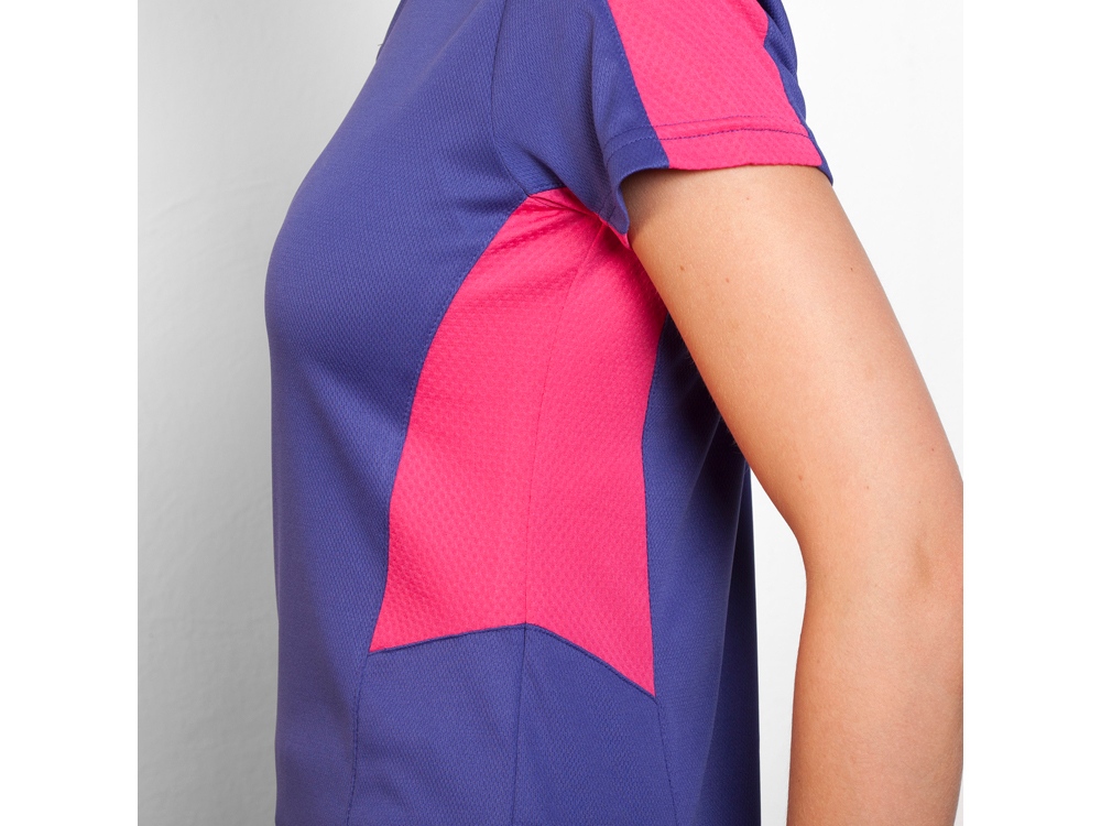 Женская футболка с коротким рукавом. V-образная горловина. Комбинация из 2 полотен контрастного цвета: структурное полотно на полочке и дышащая 3D сетка на плечах и боках.