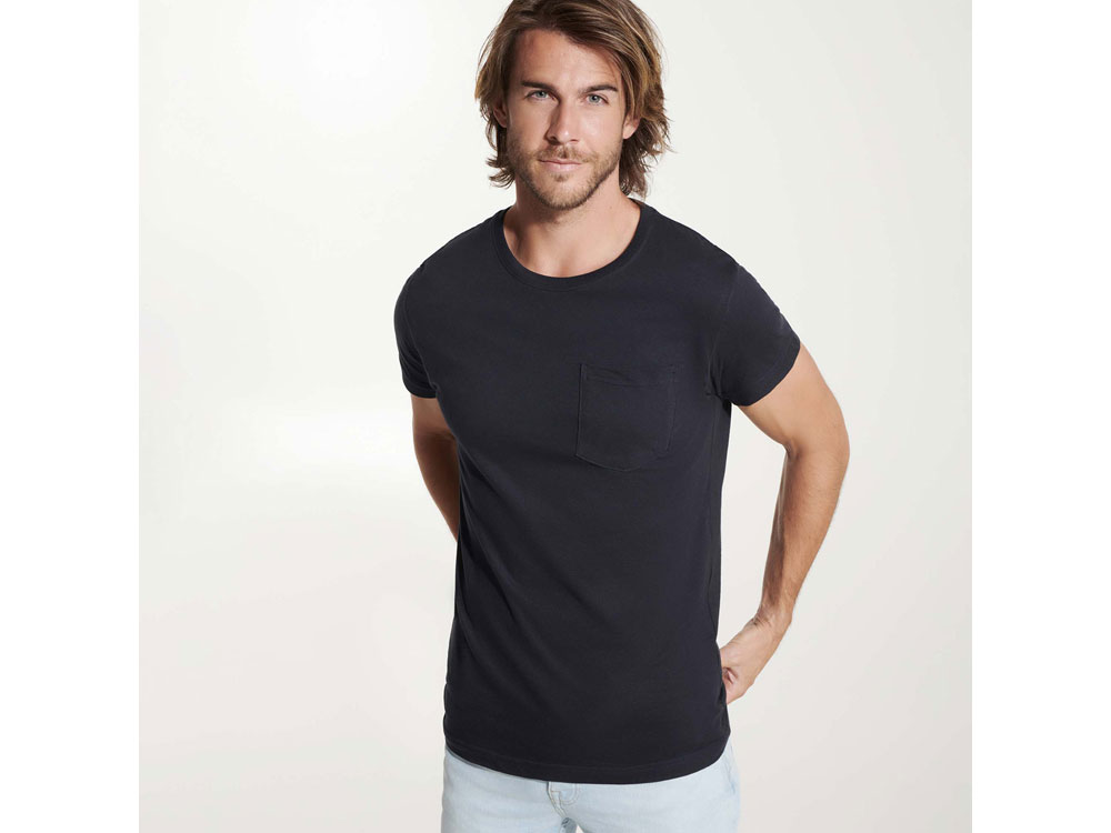 Футболка с коротким рукавом. Двойная строчка по горловине и плечевым швам. Функциональный нагрудный карман - вы можете положить что-то внутрь или просто наслаждаться модным дизайном.