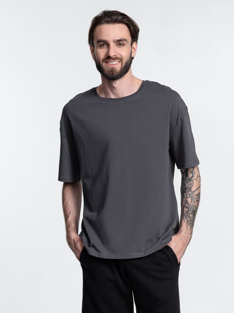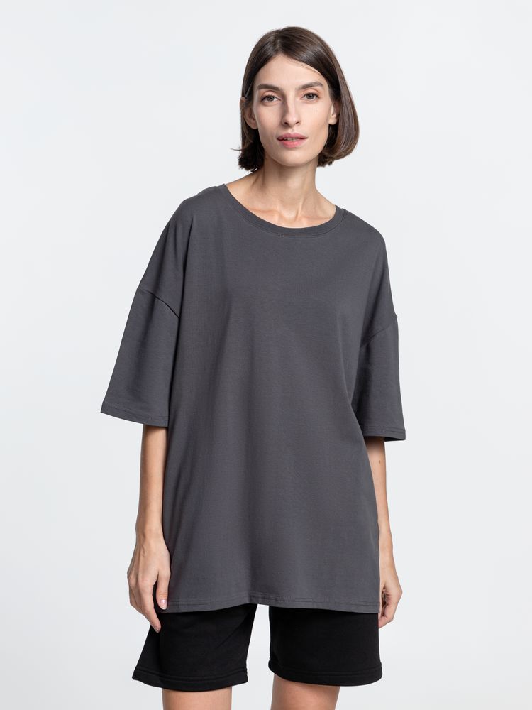 Футболка унисекс оверсайз Crosstown, темно-серая купить оптом и в розницу с нанесением логотипа в Уфе