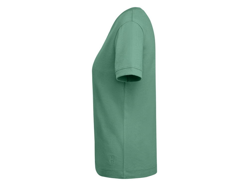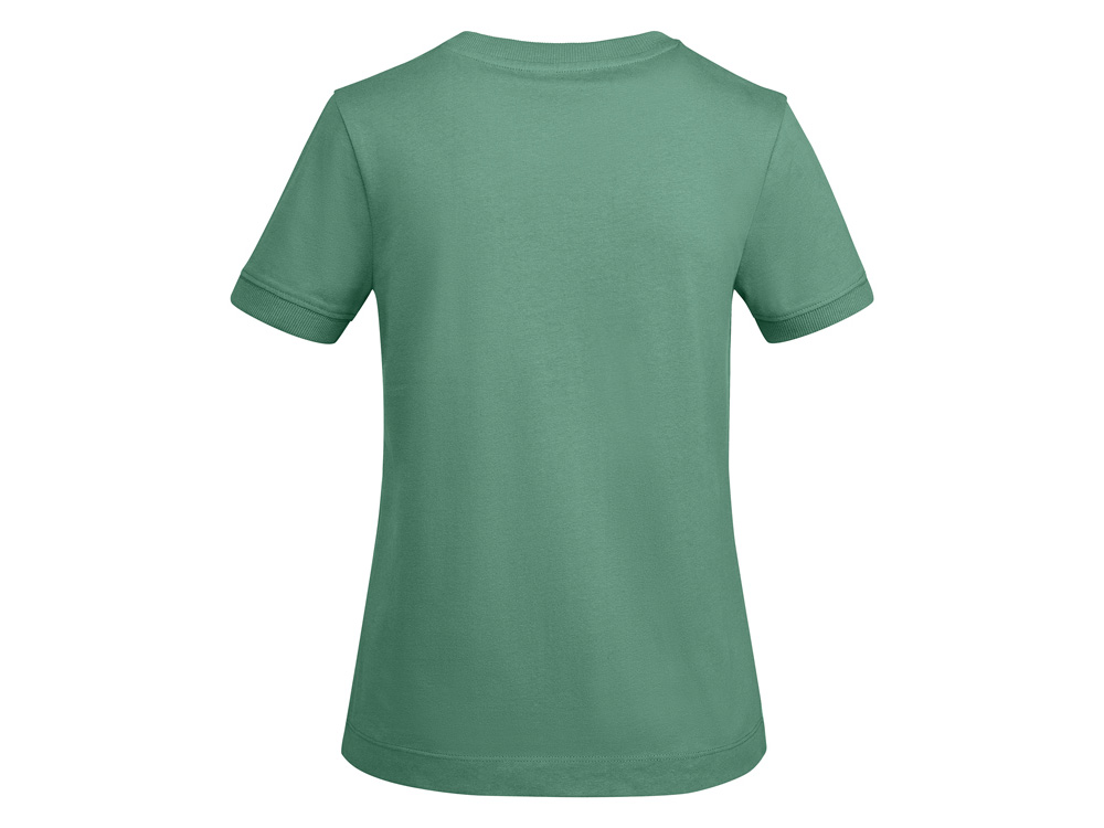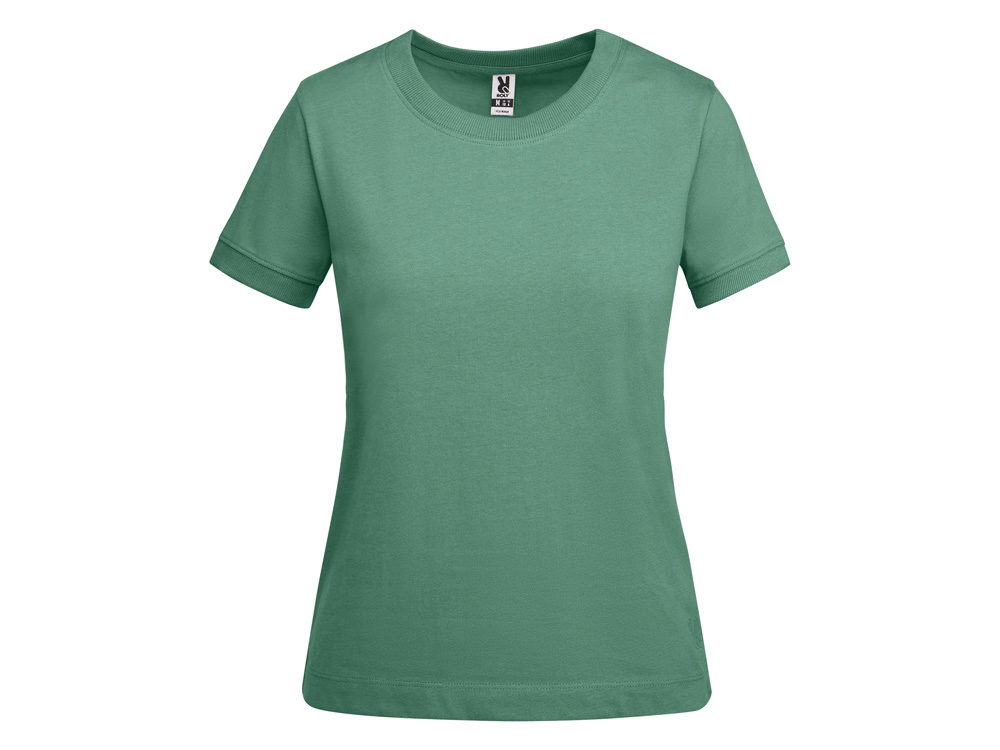 Женская футболка с коротким рукавом из плотного хлопка. Широкая горловина в рубчик 2x1 и окантовка краев рукавов. Усиленные закрытые швы по горловине. Боковые швы. Наличие логотипа Roly на левой стороне низа и широкая отстрочка.