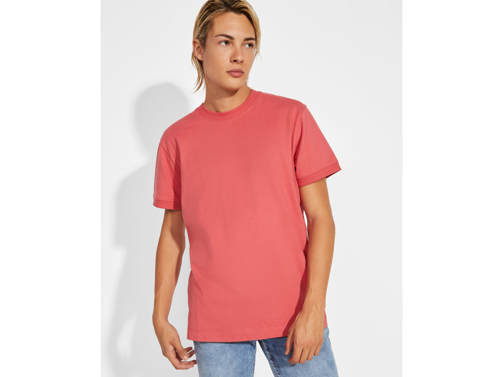 Мужская футболка с коротким рукавом из плотного хлопка. Широкая горловина в рубчик 2x1 и окантовка краев рукавов. Усиленные закрытые швы по горловине. Боковые швы. Наличие логотипа Roly на левой стороне низа и широкая отстрочка.