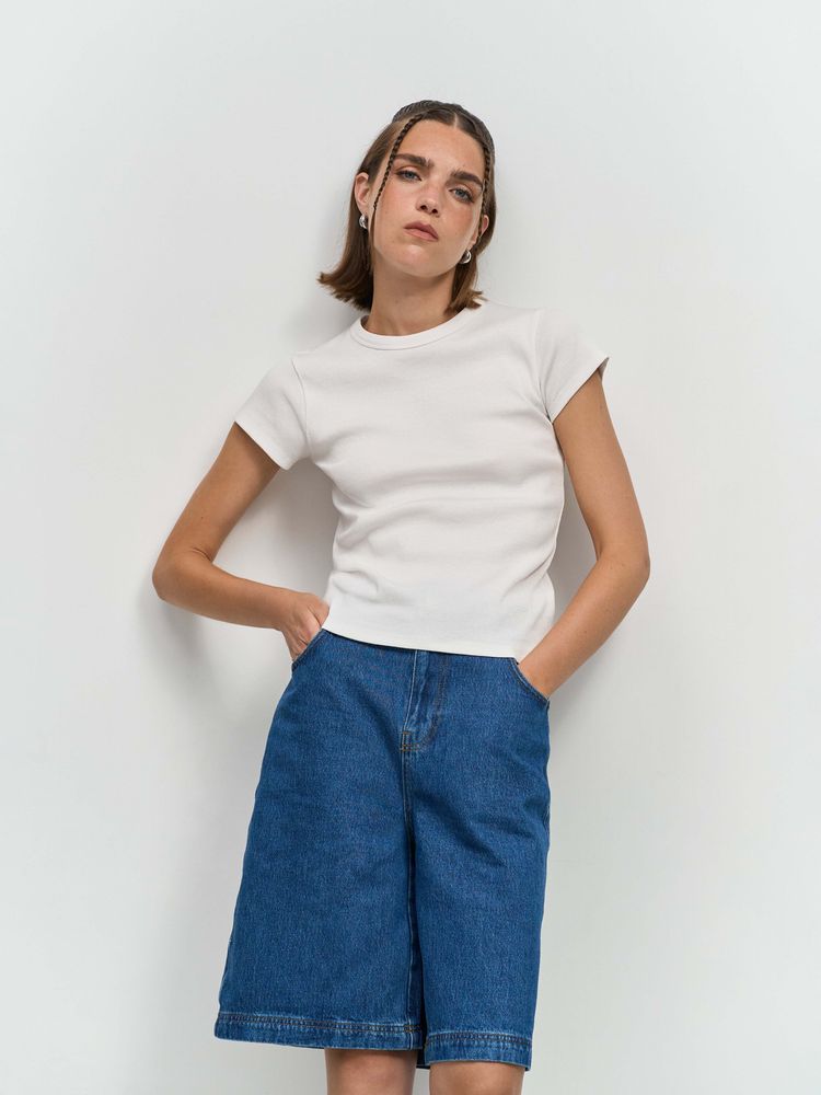 Приталенная женская футболка в рубчик из гребенного хлопка.