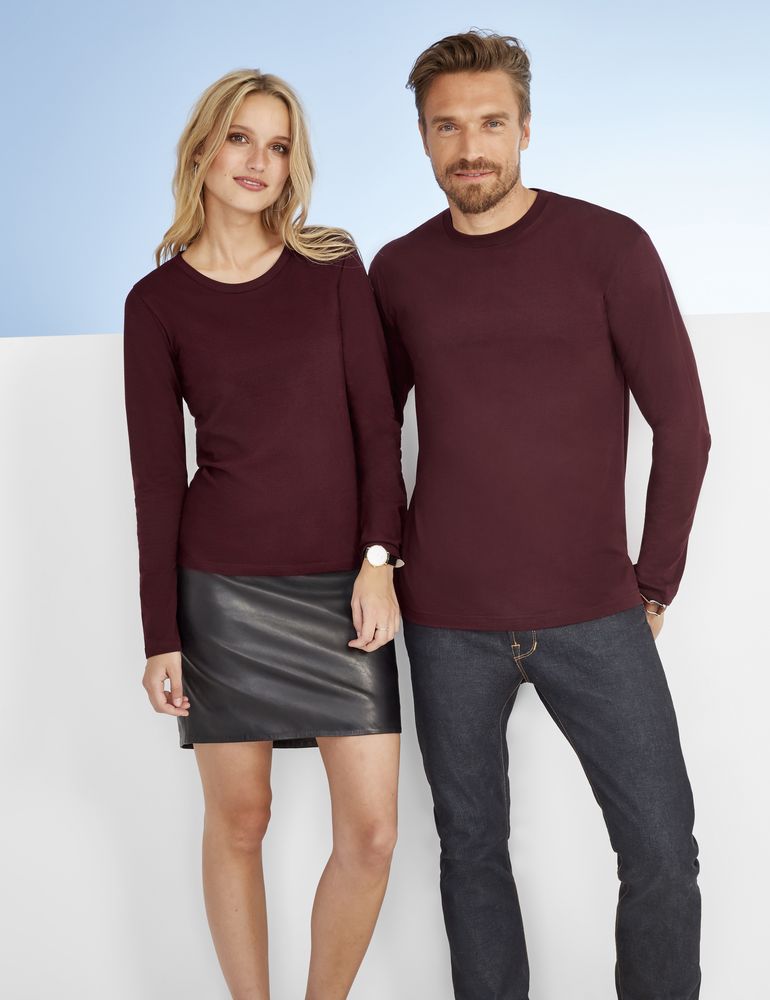 Футболка унисекс с круглым воротом и длинными рукавами. Укрепляющая тесьма по вороту, нижний край рукава без резинки. Без боковых швов.