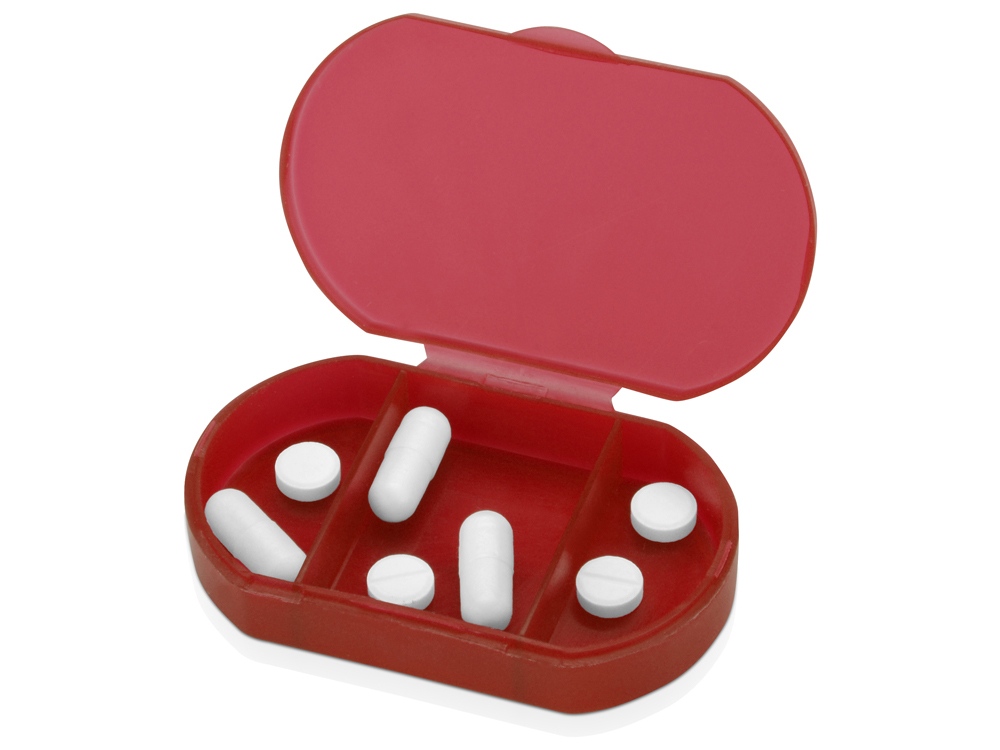 Компактная таблетница выполнена из прочного полупрозрачного пластика, имеет три отделения.