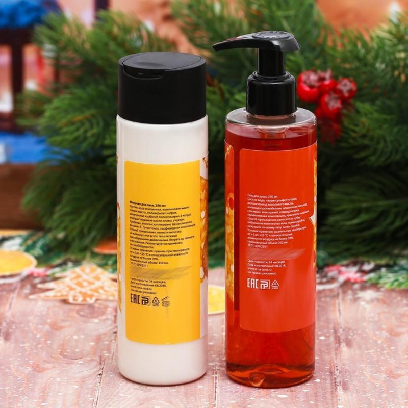 В наборе молочко для тела и гель для душа с ароматом шоколада.