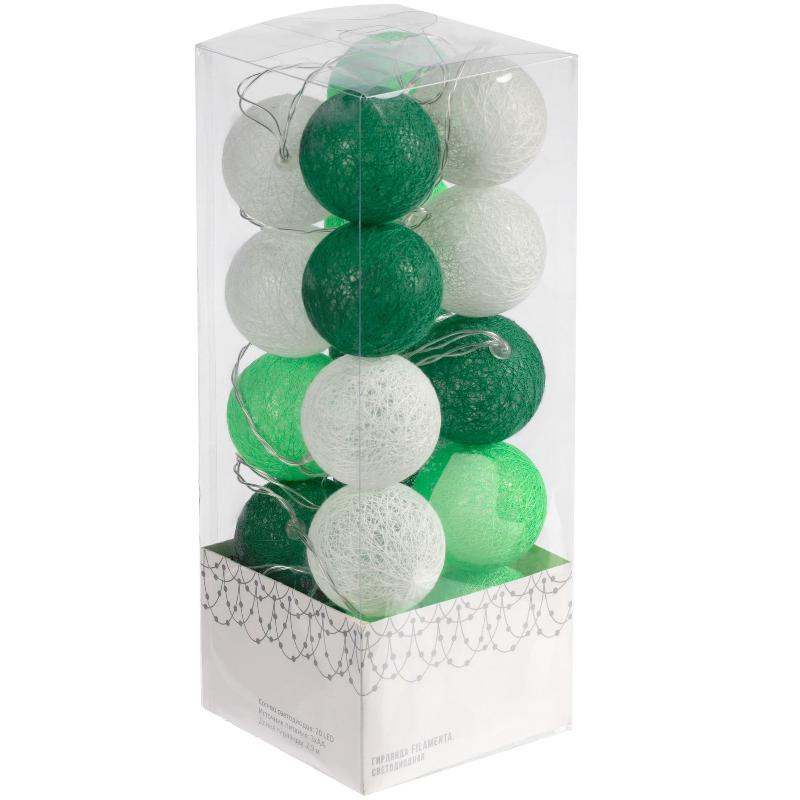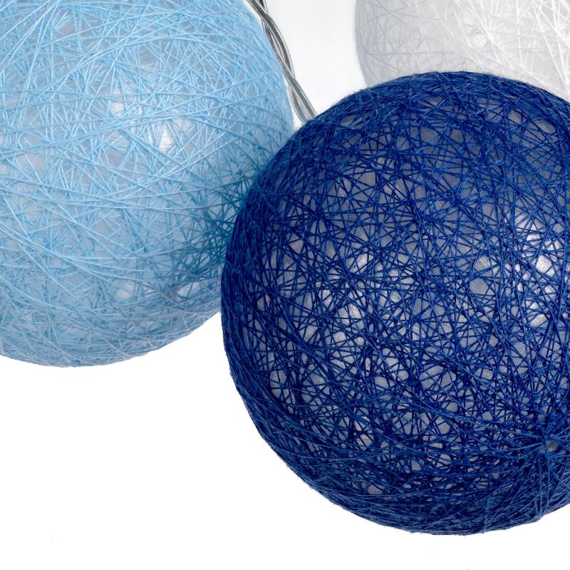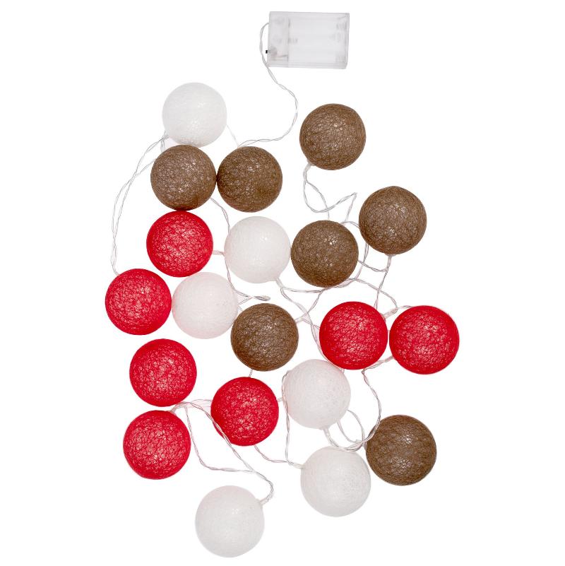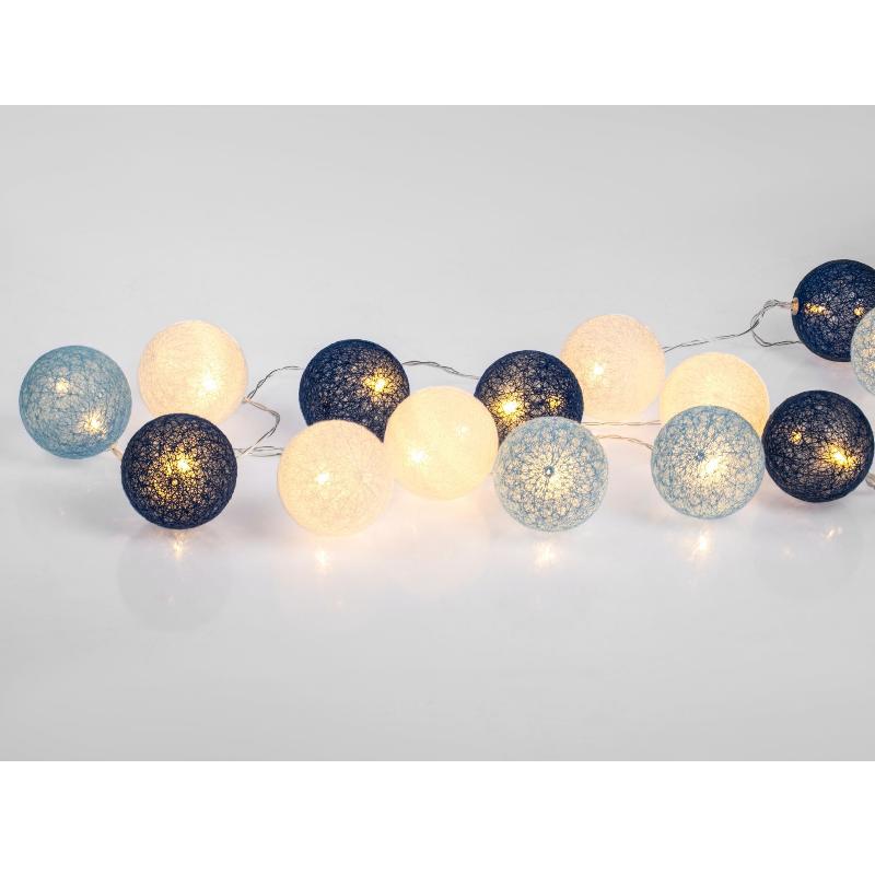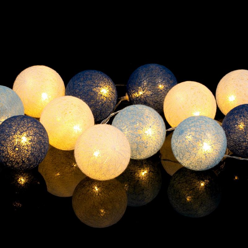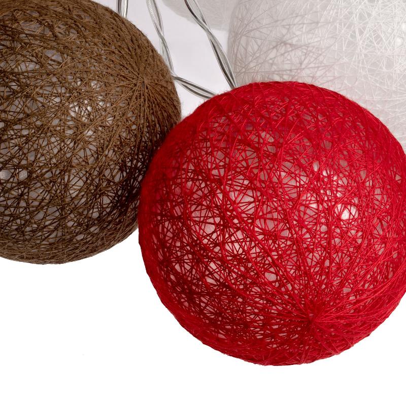 • 20 светодиодов с теплым светом в обрамлении нитяных шариков ручной работы