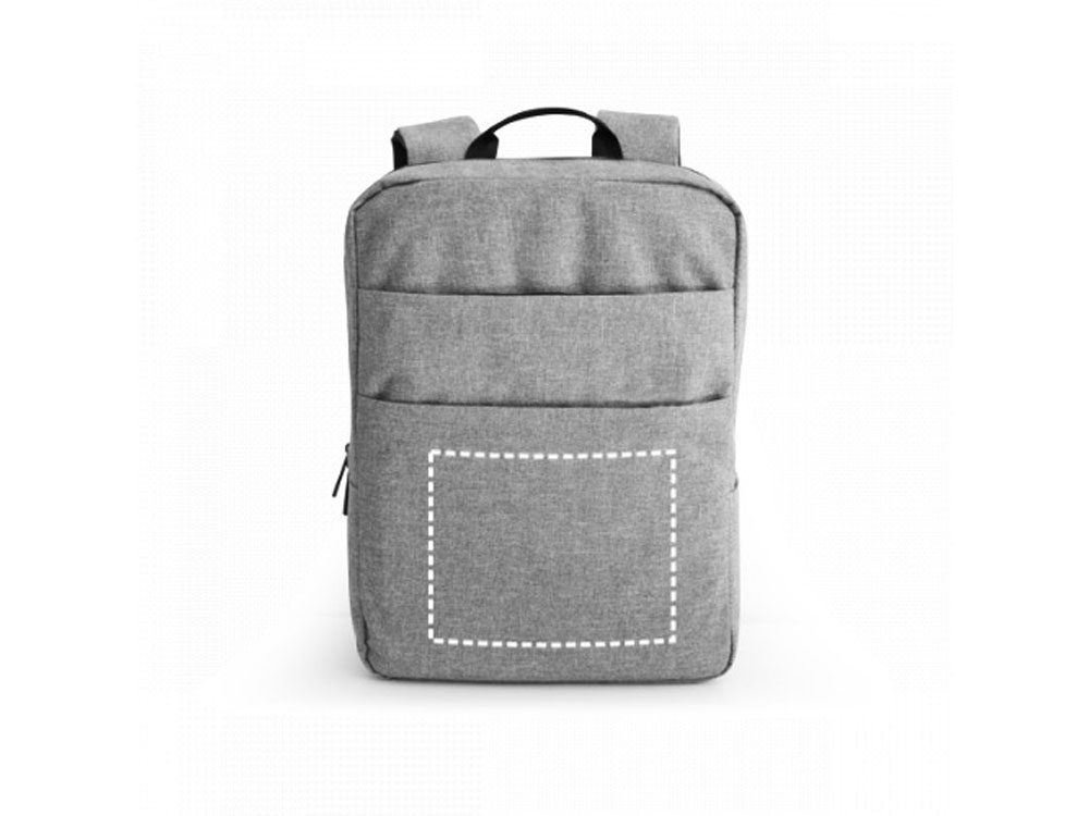 Рюкзак для ноутбука из полиэстера 600D высокой плотности с мягким отделением для ноутбука с диагональю до 15'6''. Внутренняя подкладка с набивкой. В рюкзаке есть 2 передних кармана, задняя часть и шлейки с набивкой. Вид нанесения, рекомендуемый поставщиком: трансфер