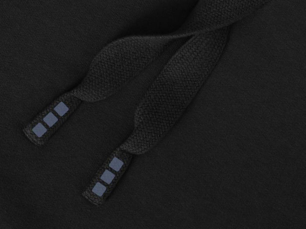 Боковые панели из гладкого трикотажа в рубчик. С V-образной вставкой из гладкого трикотажа в рубчик в центральной части. Манжеты из гладкого трикотажа в рубчик с V-образной формой. С подшивкой из гладкого трикотажа в рубчик. Капюшон на кулиске. Карман кенгуру. в форме полумесяца. Подкладка для капюшона из тонкого гладкого трикотажа. Выгравированные старинные серебряные люверсы. Атласная лента на шее. Лента контрастного цвета с рисунком елочка. Ворсованная внутренняя часть для ощущения мягкости, тепла и комфорта.