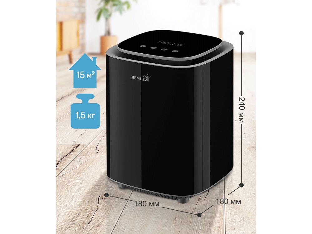 Инновационный очиститель+обеззараживатель + озонатор воздуха от REMEZair – Здоровый Воздух Вокруг Вас! Благодаря использованию УФ-технологии инновационный прибор REMEZair уничтожает до 99,95% всех известных вирусов и бактерий (вкл. COVID), делая воздух чистым и безопасным. Многоступенчатая система фильтрации устраняет из воздуха (пыльцу, шерсть и перхоть животных, пыль и споры плесени), поглощает запахи, формальдегиды и прочие летучие органические соединения. Дополнительное использование Озонатора в приборе формирует необходимую концентрацию озона, уничтожая плесень и устраняя неприятные запахи. Датчик присутствия, удобное дистанционное управление посредством Wi-Fi соединения, интеллектуальные режимы и защитная блокировка сделают эксплуатацию прибора комфортной и безопасной. Стильный дизайн, компактный размер и небольшой вес позволят использовать очиститель+обеззараживатель REMEZair как мобильное устройство, которое легко впишется в любой интерьер. REMEZair – Здоровый Воздух Вокруг Вас! Очиститель+обеззараживатель RMA-107-02 от REMEZair содержит: - Комбинированный НЕРА+угольный фильтр 2 в 1 устраняет крупные частицы пыли и шерсти животных, большинство домашних аллергенов и других мелких частиц, загрязняющих воздух. - УФ-стерилизатор. Ультрафиолетовые светодиоды повреждают ДНК вирусов и бактерий, полностью уничтожая их. - Фотокаталитический фильтр разлагает токсичные вещества, газообразные загрязнения, выхлопные газы и др. опасные соединения; - Ионизатор, насыщающий воздух отрицательно заряженными ионами, очищает его от частиц дыма и различных микроорганизмов. - Озонатор формирует необходимую концентрацию озона, уничтожает плесень и устраняет неприятные запахи.