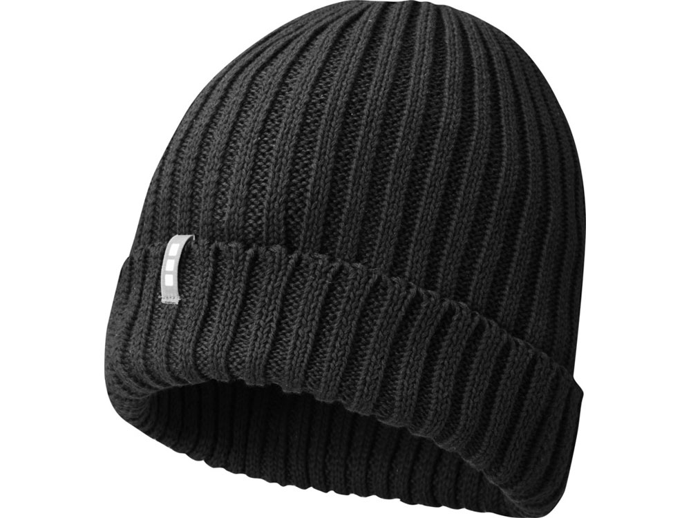 Экологически безопасный рекламный головной убор. Однослойная шапка с двойным отворотом связана рибом 2х2 7 класса из 100% органического хлопка. Фирменная этикетка в виде петли.