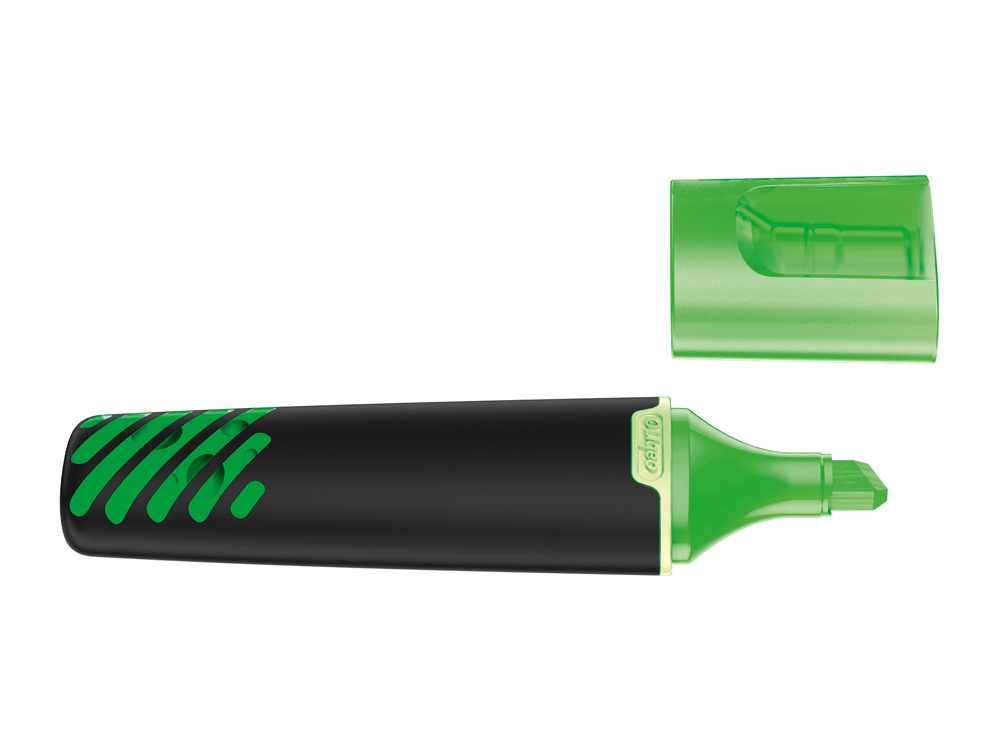 Жидкие текстовые выделители с черным корпусом и полу-прозрачным колпачком в цвет стержня. Готов к применению без прокачки или прокалывания.